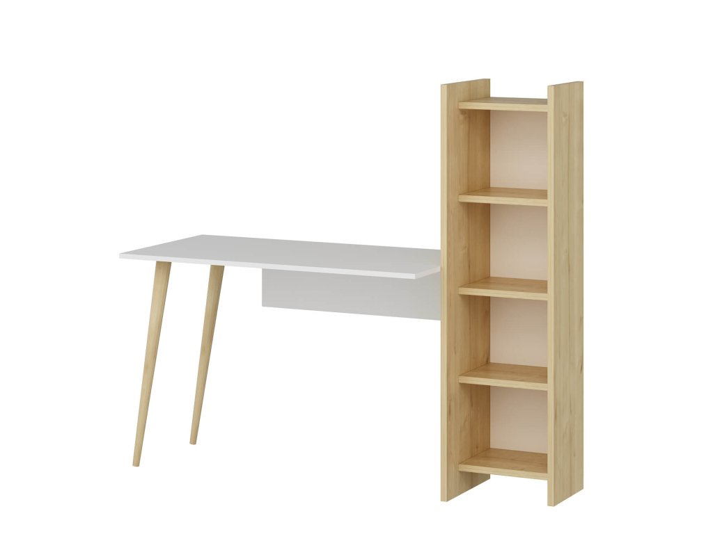 Písací stôl s regálom MADRID, biela/dub