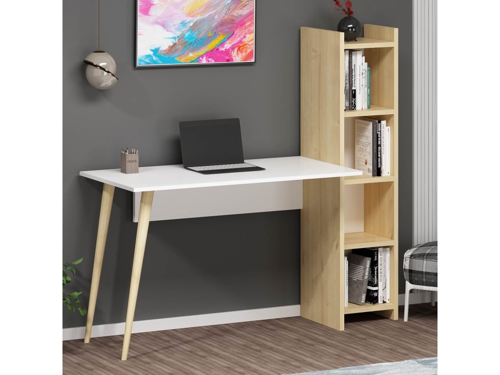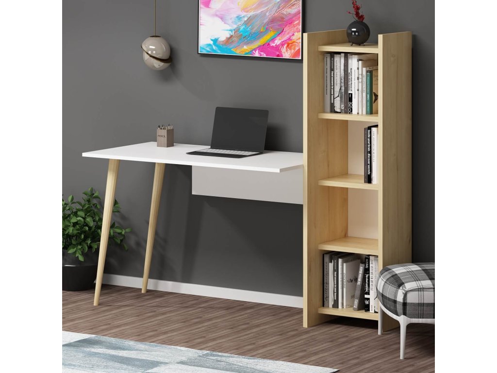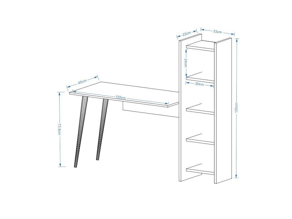 S rozmermi 73.8 x 120 x 45 cm poskytuje dostatočný priestor pre pohodlnú prácu alebo štúdium. Praktické vybavenie v podobe regálku s tromi policami ponúka dostatok úložného miesta pre všetky potrebné veci.