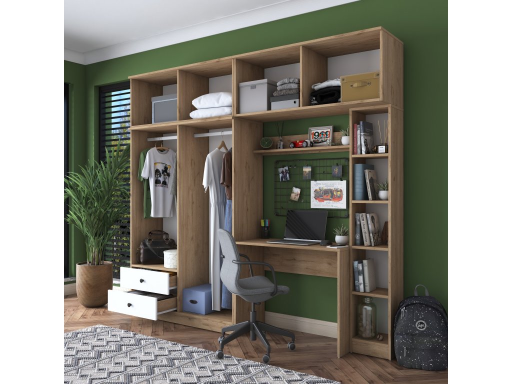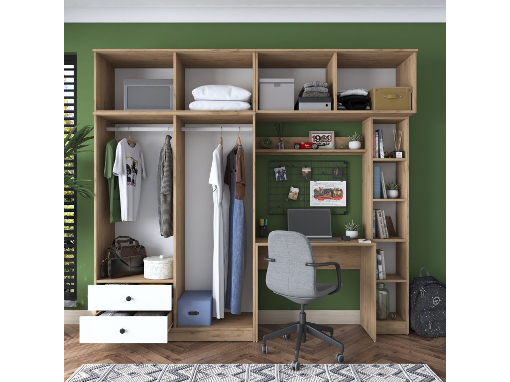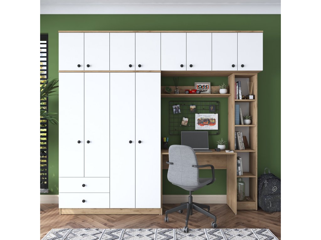 | Zostava obsahuje: | šatníková skriňa, závesná skriňa, písací stôl |