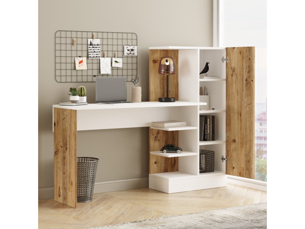 Písací stôl so skrinkou CITY 2, borovica/biela