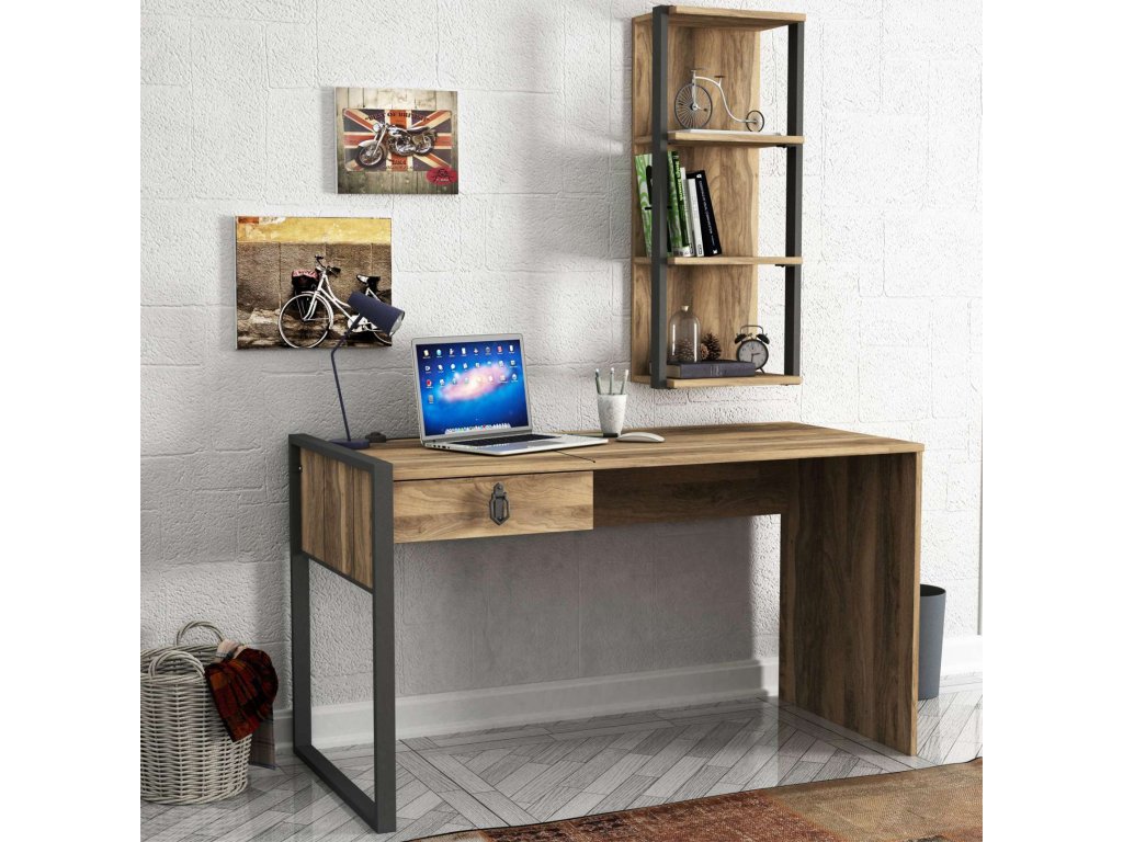 Písací stôl LUST je vyrobený z kvalitného LTD materiálu a kovu s hrúbkou 18 mm, čo zaisťuje jeho pevnosť a dlhú životnosť. Elegantná orechová farba dodáva stolu moderný a štýlový vzhľad, ktorý sa hodí do akéhokoľvek interiéru. Stôl je vybavený praktickou zásuvkou, ktorá poskytuje dostatok úložného priestoru pre vaše pracovné potreby a pomôcky.