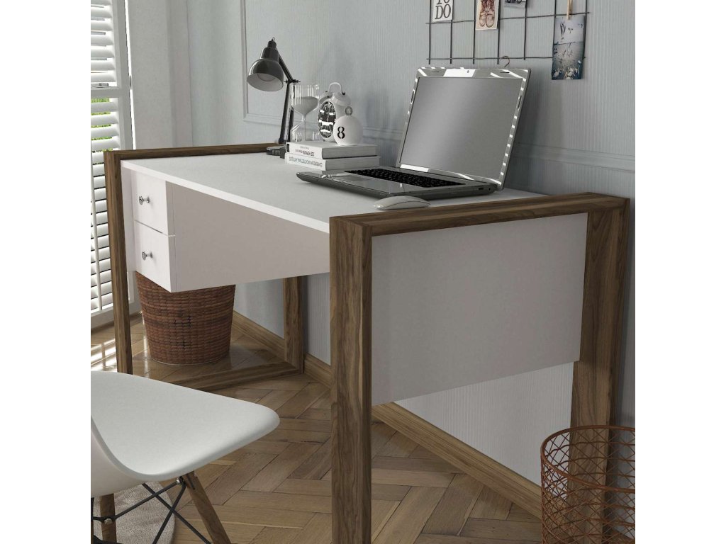 Písací stôl SULTAN, biela/orech
