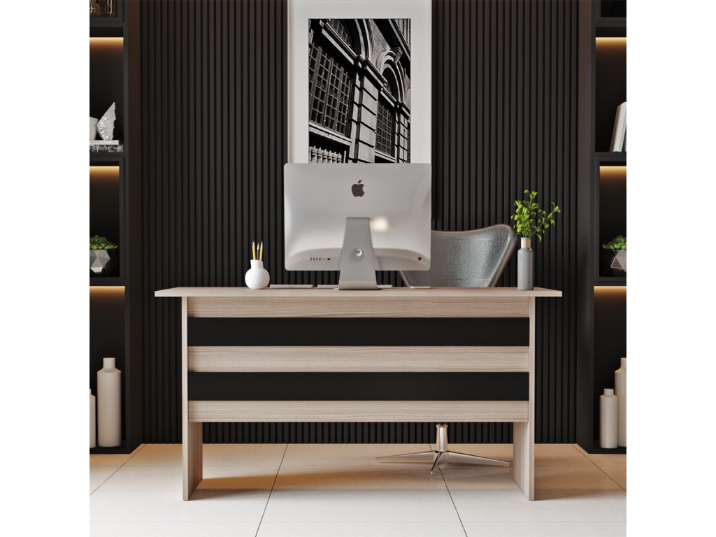 S písacím stolom VARIO1 prinesiete aj. Vďaka obdĺžnikovému a rovnému tvaru poskytuje dostatok priestoru pre všetky vaše kancelárske potreby, zatiaľ čo kombinácia dubskej a čiernej farby pridáva moderný dotyk. Navrhnutý s využitím trvanlivého materiálu LTD, je tento stôl dlhovekým a spoľahlivým spoločníkom pri každodennej práci.