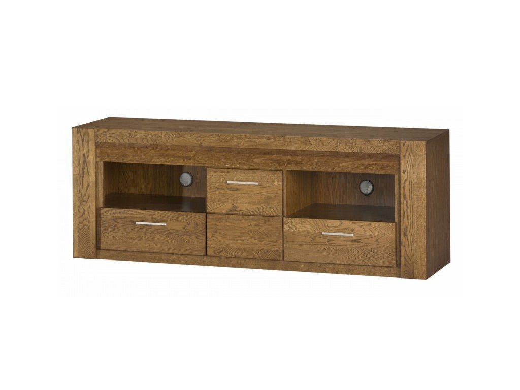 Podstavec pod televízor V-25 patrí do modernej sektorovej rady VELET. Nábytok je vyrobený z vysoko kvalitných materiálov: korpus je z prírodnej dyhy, predné časti sú z masívneho dreva. Elegantné farebné prevedenie dub rustikálny. Horizontálne osvetlenie zabudované do drevenej časti nábytku je v štandarde. Rozmer š/v/h 161 x 58 x 42 cm. Dodávame v zmontované. V sektore VELET sa nachádza 15 rôznych elementov, z ktorých je možné zariadiť si originálnu jedáleň či obývačku.Dodatočné parametre