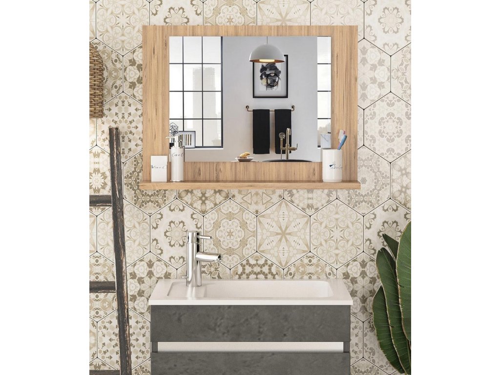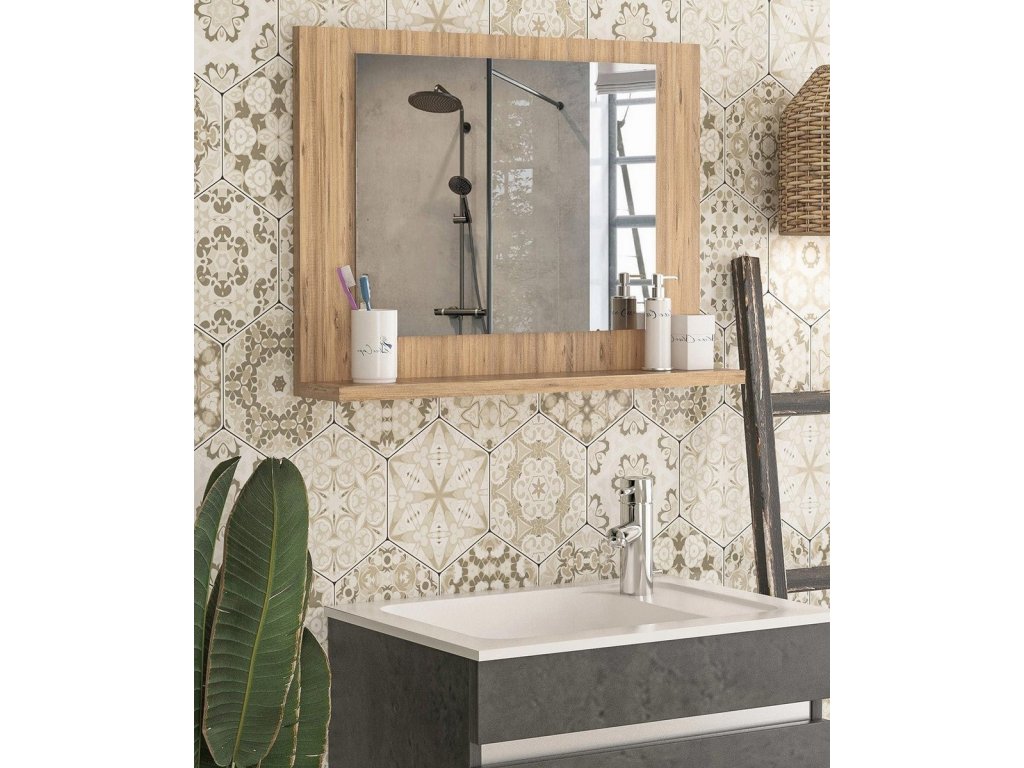 Polička so zrkadlom do kúpeľne MOSLY, borovica