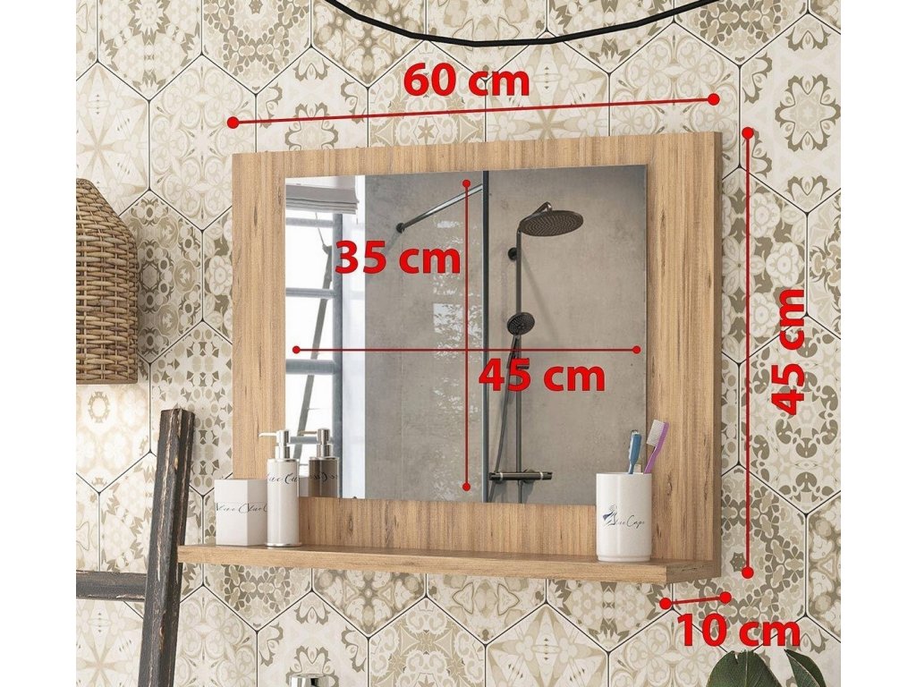 Je vyrobená z kvalitných LTD dosiek, s hrúbkou 18 mm. Zrkadlo je možné použiť horizontálne aj vertikálne. Farba: borovica.
