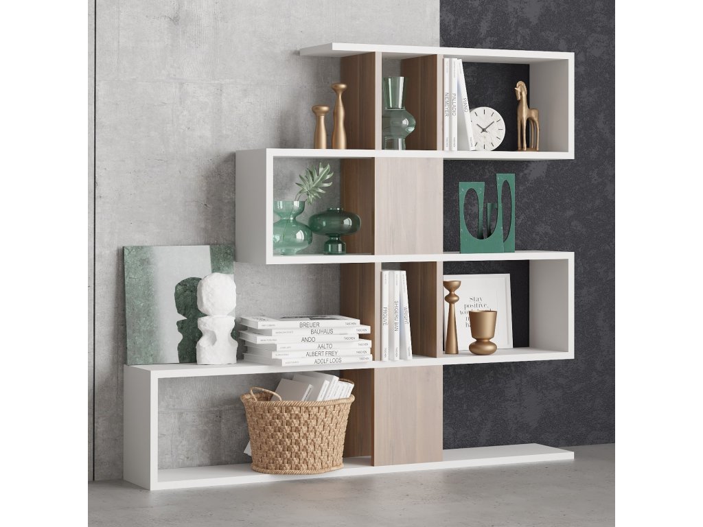 Knižnica je navrhnutá v krásnej kombinácii bielej a orechovej farby, čo vytvára vizuálne príjemný kontrast, ktorý dodá každej miestnosti nádych elegancie.