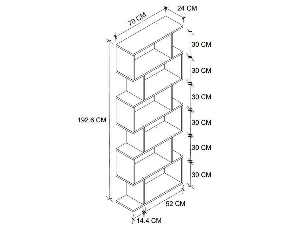 Štýlová knižnica je v jednoduchom a modernom prevedení. Je vhodná do obývacej izby, ale aj detskej izby. Svoje využitie nájde aj v pracovni či kancelárii. Je možné ju pripevniť na stenu. Regál/knižnica je vyrobený z kvalitnej LTD dosky, ktorá je nenáročná na údržbu. Hrúbka dosky - 18 mm. Farba: borovica.