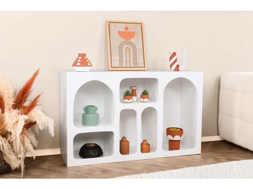 Knižnica MARK je navrhnutá tak, aby spájala estetiku a praktickosť. Ponúka dostatok úložného priestoru pre vaše obľúbené knihy, dekorácie či ďalšie drobnosti. Vďaka elegantnej bielej farbe sa ľahko zladí s vašim interiérom.