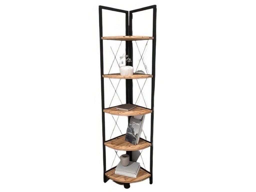 Rohový regál / knižnica je vyrobený z kvalitnej LTD dosky, ktorá je nenáročná na údržbu. Farba: borovica. Hrúbka dosky - 18 mm. Konštrukcia je kovová v čiernej farbe - natretá elektrostatickou práškovou farbou odolnou voči hrdzi a poškriabaniu.