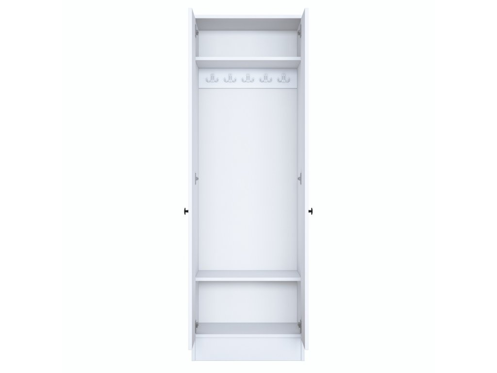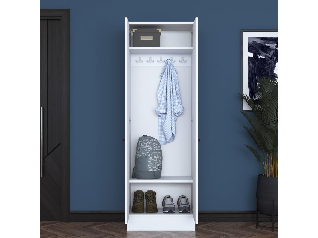 Policová skriňa FAN je ideálnym riešením pre organizáciu a usporiadanie priestoru vo vašej predsieni. Vďaka čisto bielemu prevedeniu a škandinávskemu štýlu prináša do interiéru sviežosť a eleganciu. Praktické plné dvierka umožňujú diskrétne uloženie všetkých potrebných vecí.