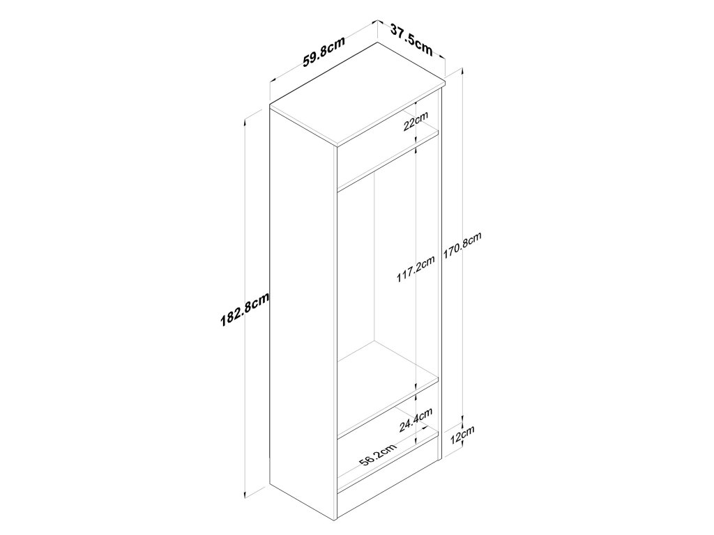 - Rozmery: 182,8 x 59,8 x 37,5 cm – vysoká a priestranná skriňa vhodná na rôzne účely.