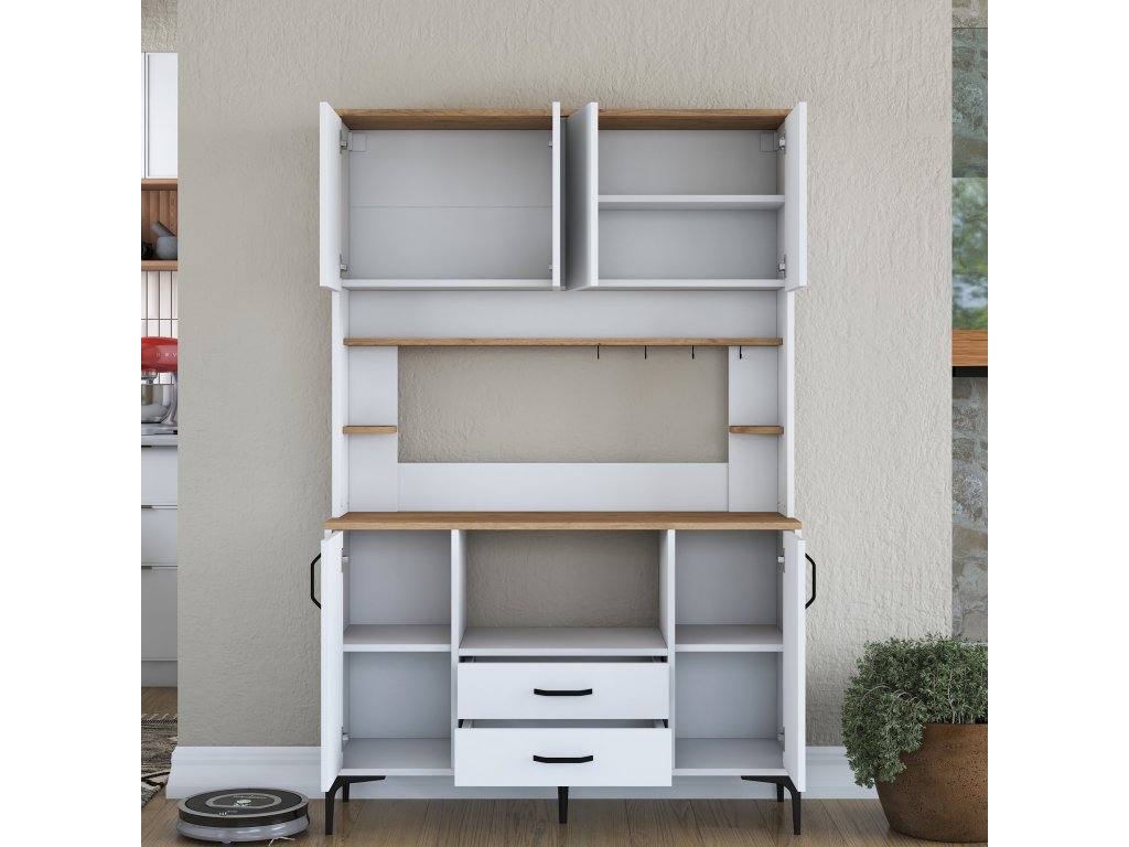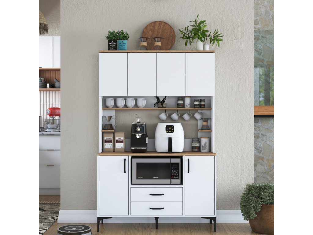 Policová skriňa DUCK je ideálnym riešením pre organizáciu kuchynských potrieb a ďalšieho vybavenia. Spojenie bielej farby a orechového dekoru prináša moderný vzhľad, ktorý skvele zapadne do každej kuchyne.