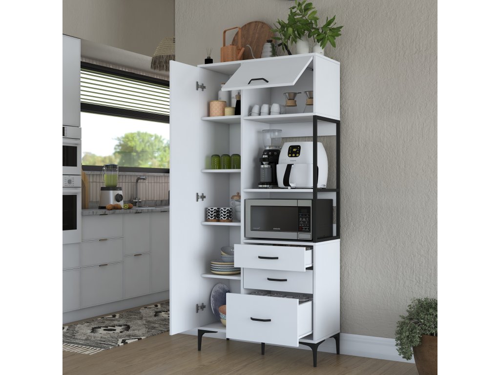 Policová skriňa LAMB je elegantným a viacúčelovým riešením pre vašu kuchyňu. Vďaka vysokej konštrukcii, čisto bielemu dizajnu a škandinávskemu štýlu prináša moderný vzhľad a dostatok úložného priestoru pre všetky vaše potreby. Je ideálny na uloženie kuchynského náčinia, potravín alebo ďalších predmetov, ktoré potrebujete mať na dosah.