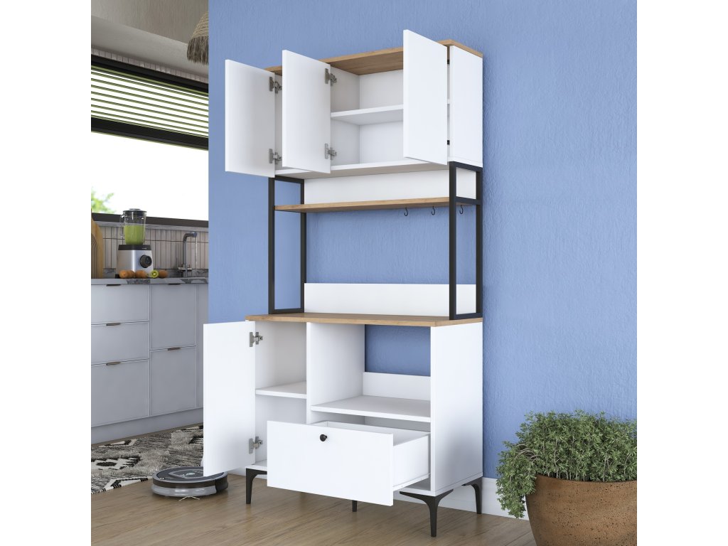 Skriňa LIBERO poskytuje dostatok úložného priestoru vďaka štyrom plným dvierkam, praktickej zásuvke a regálku, ktorý umožňuje ľahký prístup k často používaným predmetom. Horná časť je ideálna na umiestnenie mikrovlnnej rúry alebo ďalších kuchynských spotrebičov.