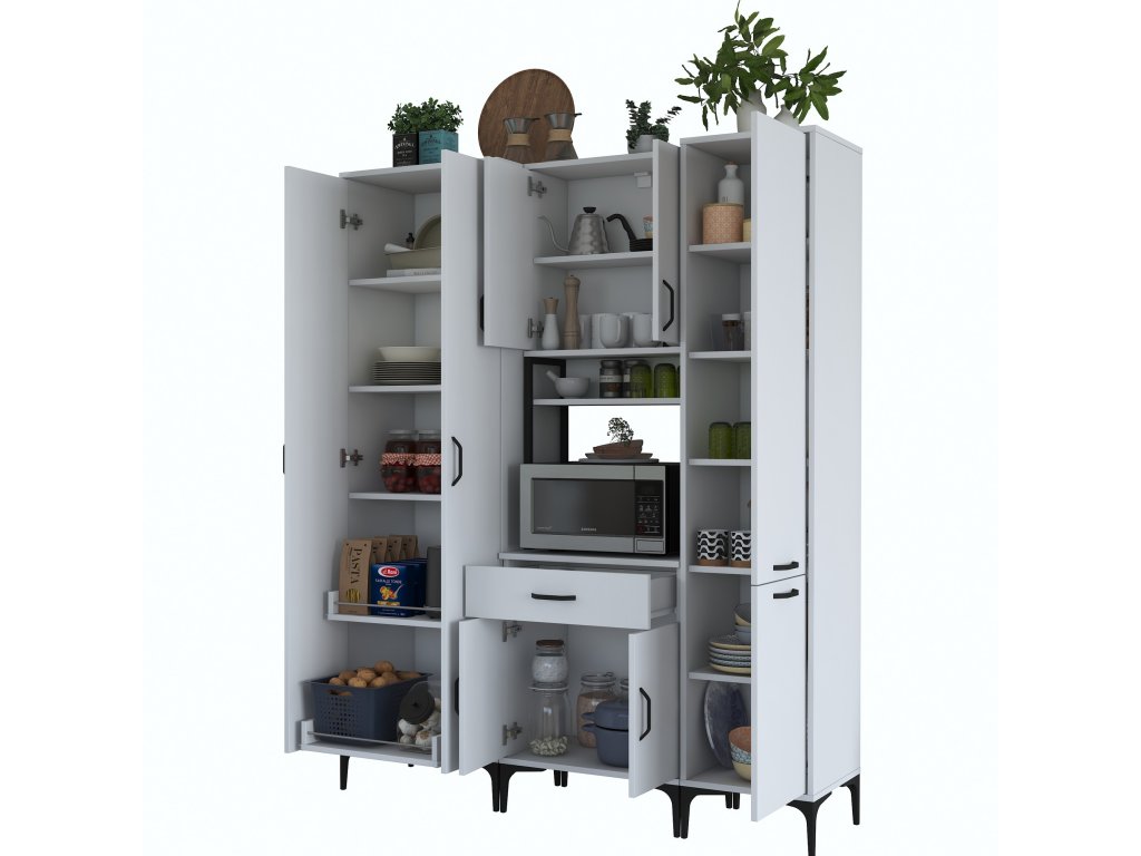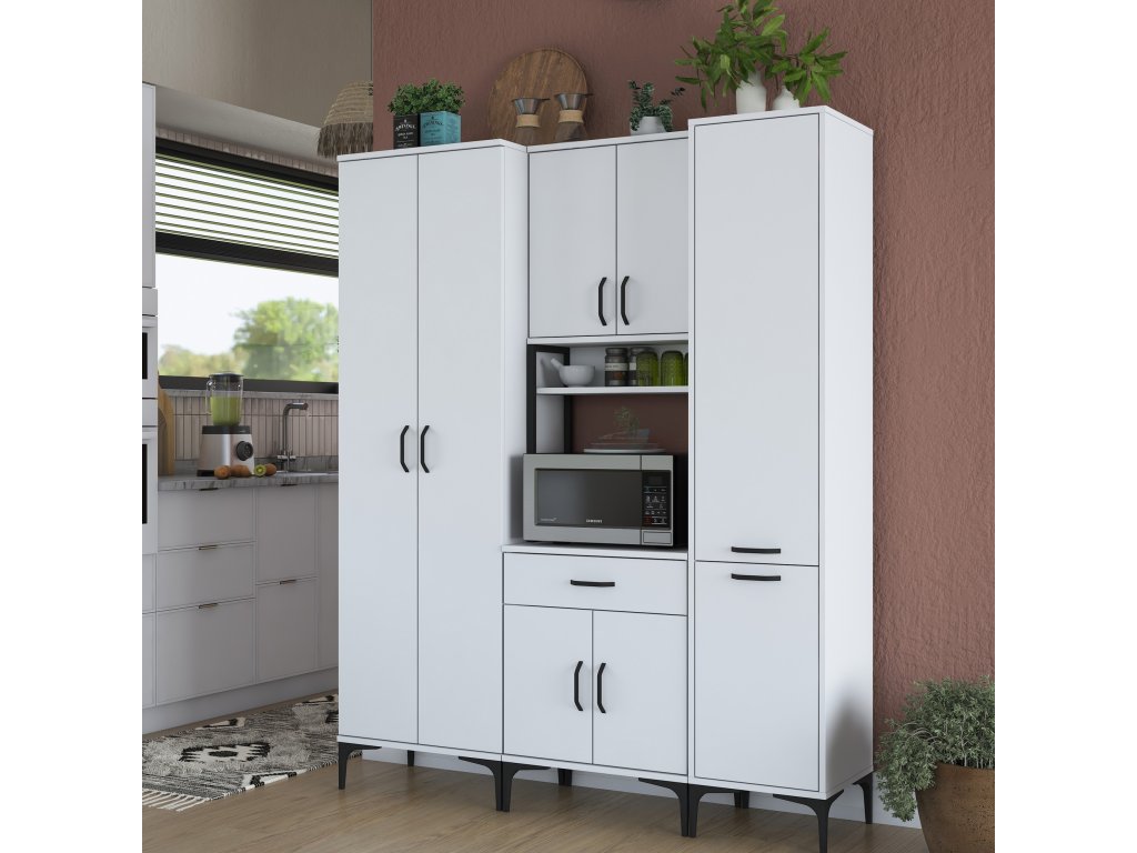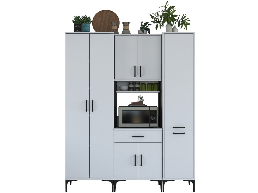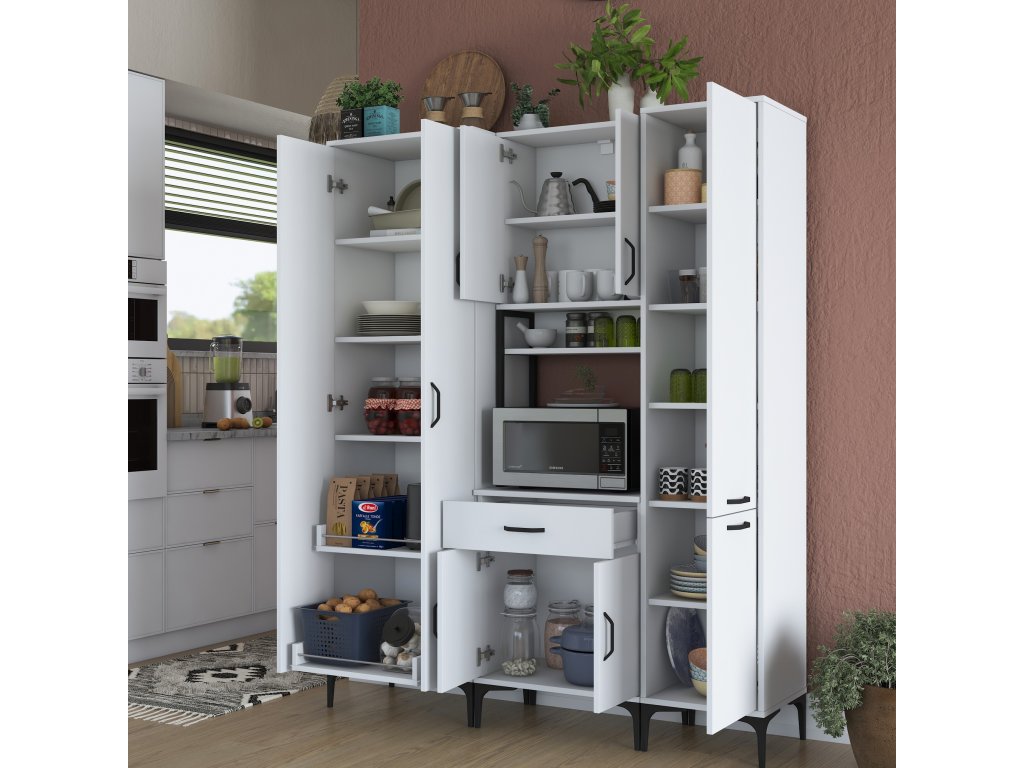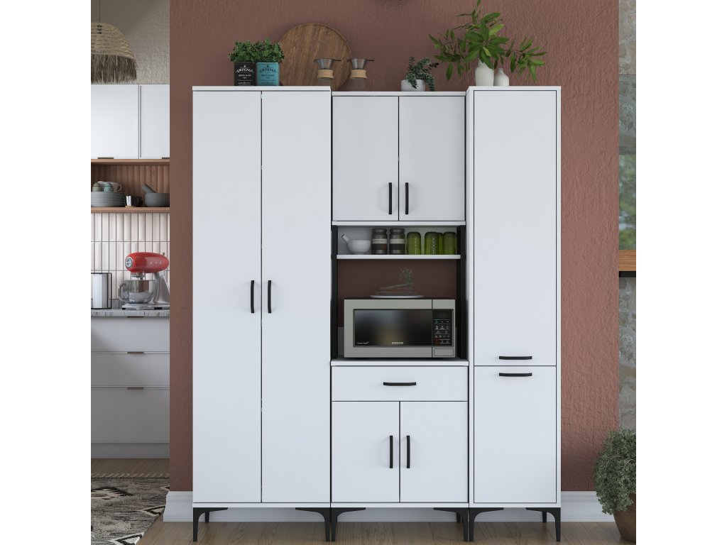 Skriňa NILE ponúka praktické usporiadanie vďaka ôsmim plným dvierkam, jednej zásuvke a regálku, ktorý je ideálny pre umiestnenie mikrovlnnej rúry alebo iných kuchynských spotrebičov. Viacúčelový dizajn poskytuje dostatok miesta na uloženie riadu, kuchynských potrieb a ďalších predmetov, ktoré chcete mať po ruke.