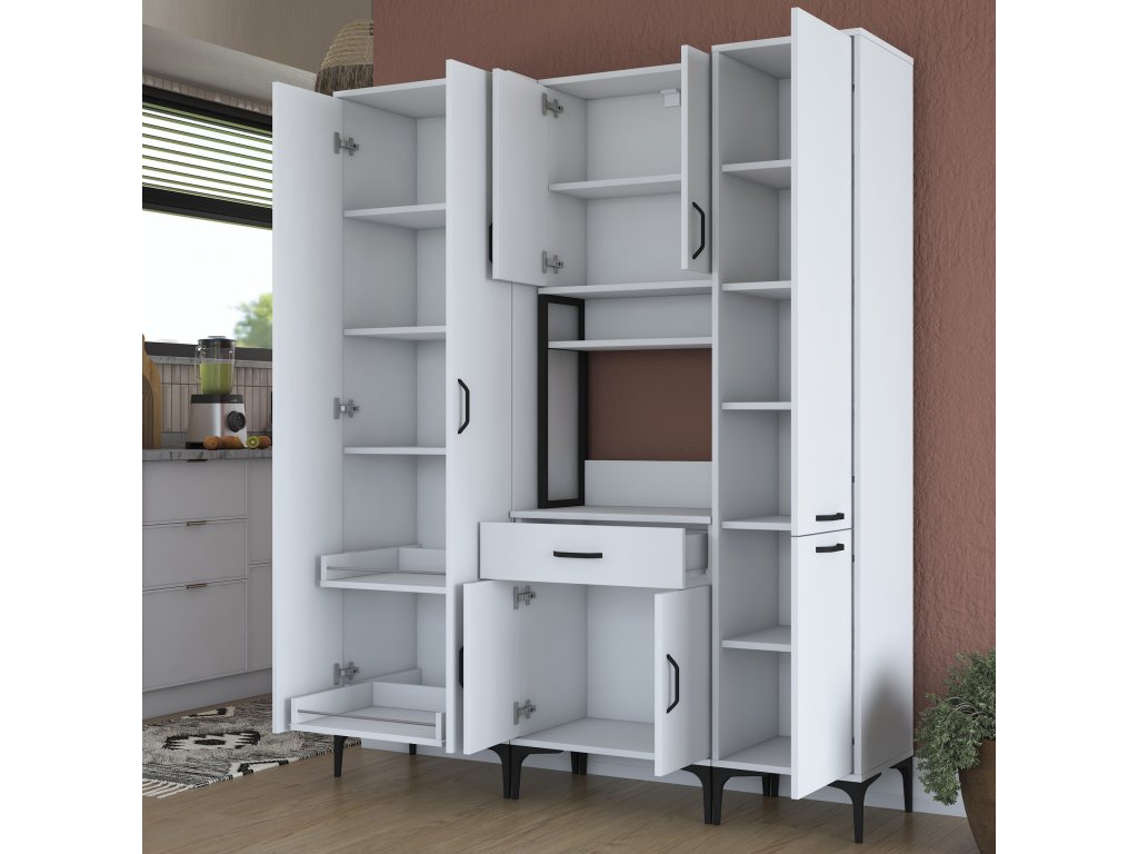 Policová skriňa NILE je ideálnym riešením pre modernú kuchyňu, kde štýl a funkčnosť hrajú hlavnú úlohu. Jej škandinávsky dizajn a čisté biele prevedenie prinášajú eleganciu a usporiadanosť do každého interiéru.
