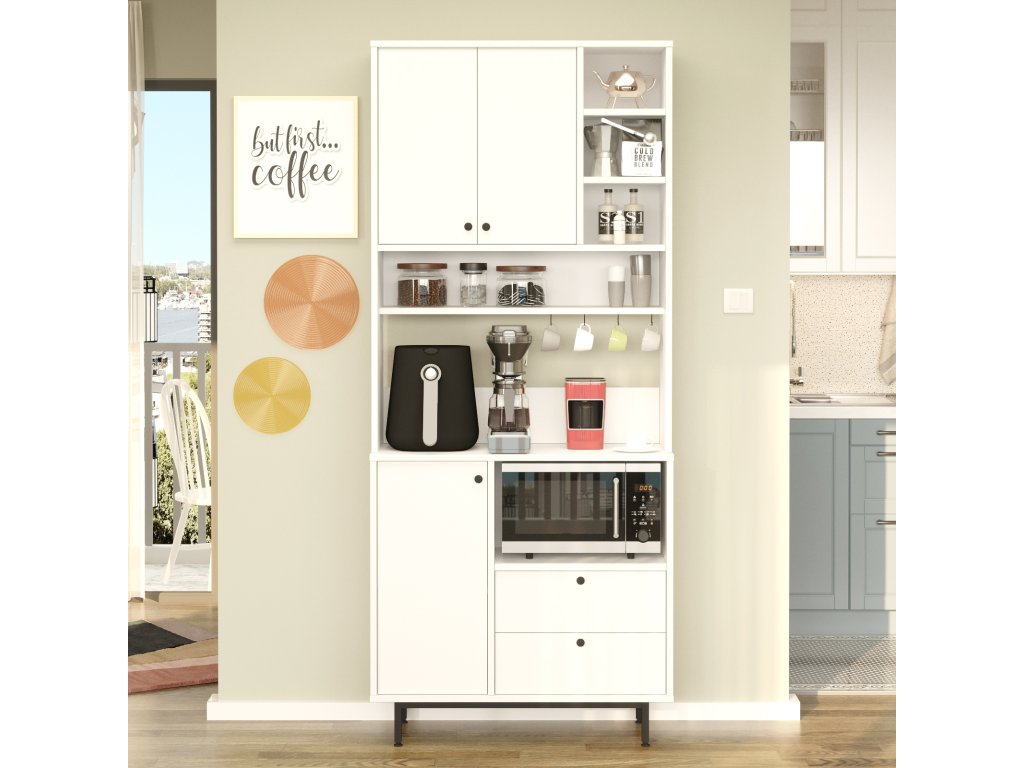 Policová skriňa na mikrovlnku RENDY 6, biela