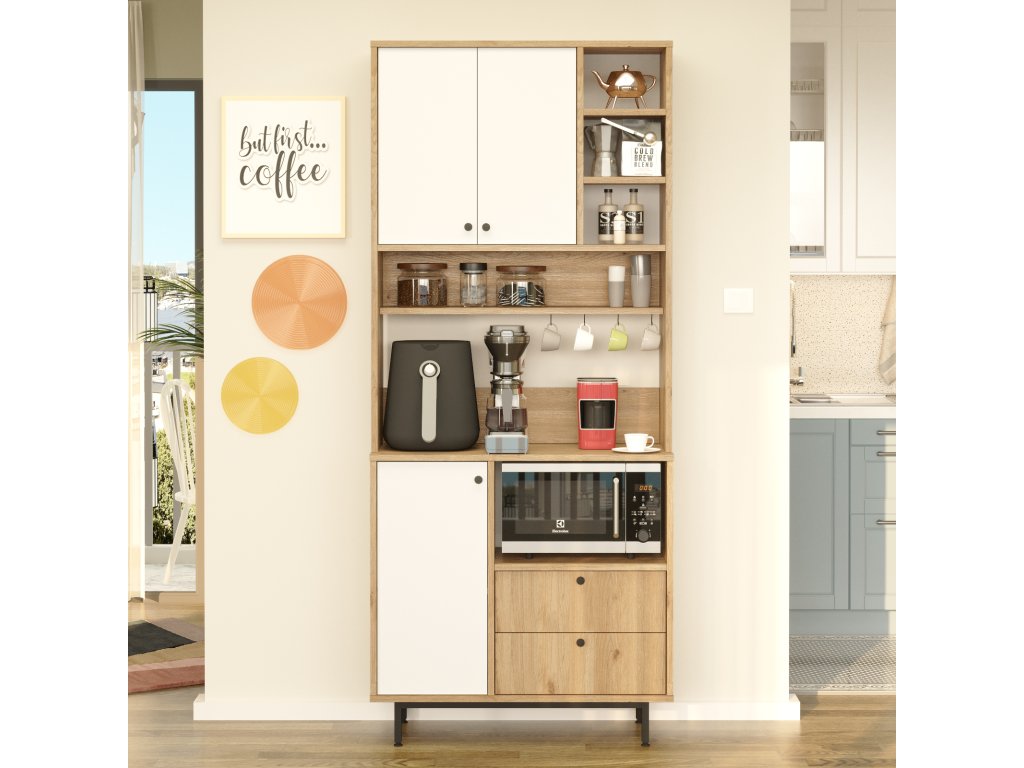 Policová skriňa na mikrovlnku RENDY 6, sepet/biela