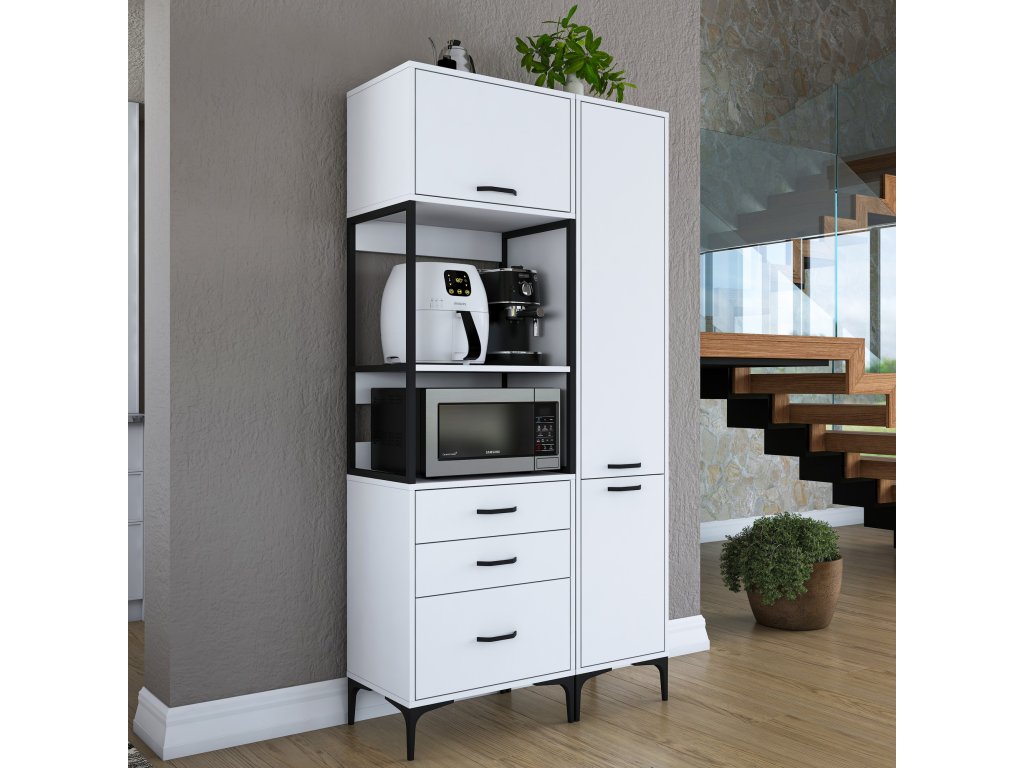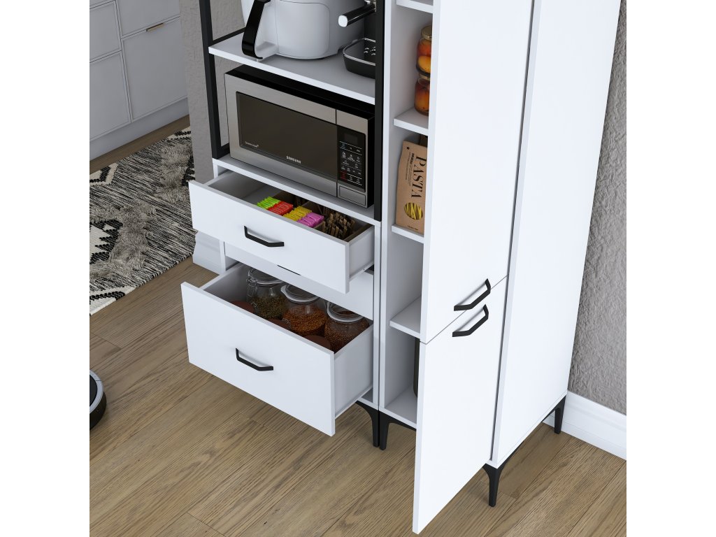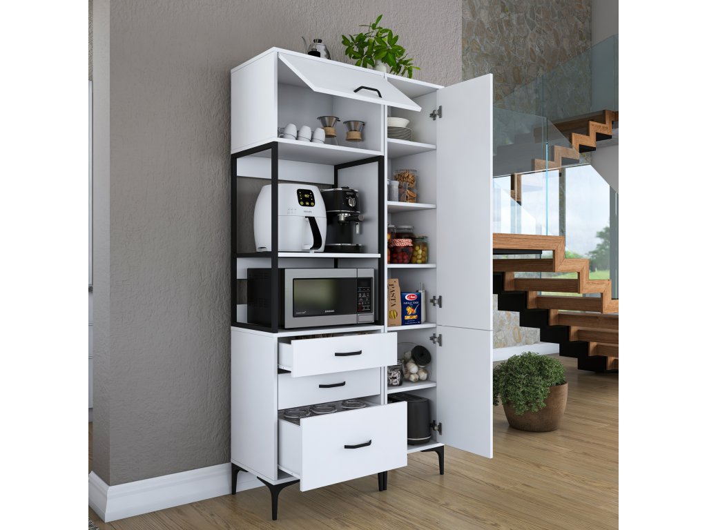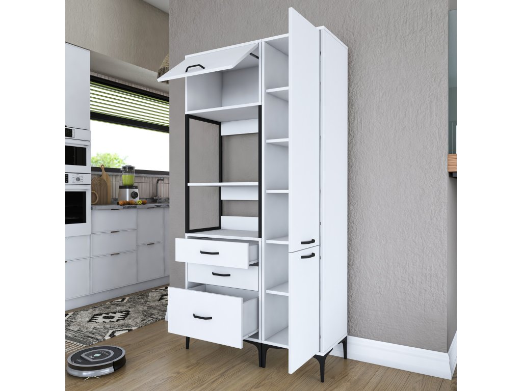 Skriňa TERI je vybavená tromi zásuvkami, plnými dvierkami a otvoreným regálkom, čo zaisťuje dostatok priestoru na uloženie kuchynských potrieb, riadu i ďalších predmetov. Jej viacúčelový dizajn sa hodí nielen do kuchyne, ale aj do iných miestností, kde je potrebné praktické usporiadanie.