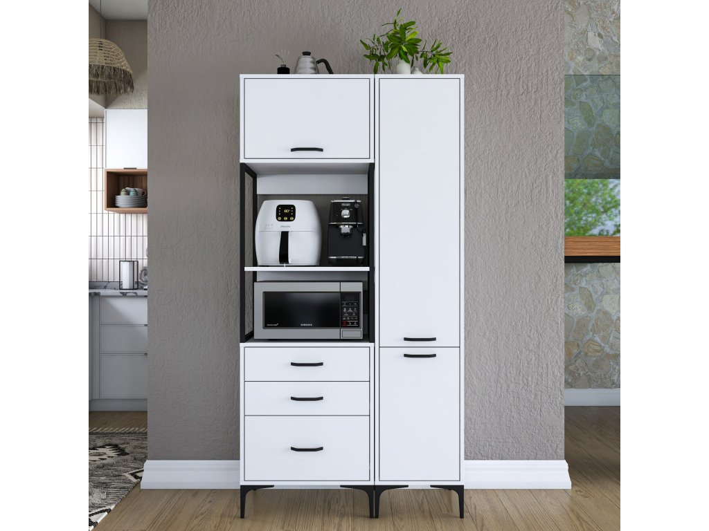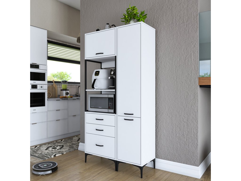 Policová skriňa TERI je ideálnym doplnkom pre modernú kuchyňu. Je navrhnutá v škandinávskom štýle, ktorý kombinuje čistý biely dizajn a funkčnosť. Táto viacúčelová skriňa poskytuje dostatok úložného priestoru a zároveň pridáva estetický prvok do vášho interiéru.