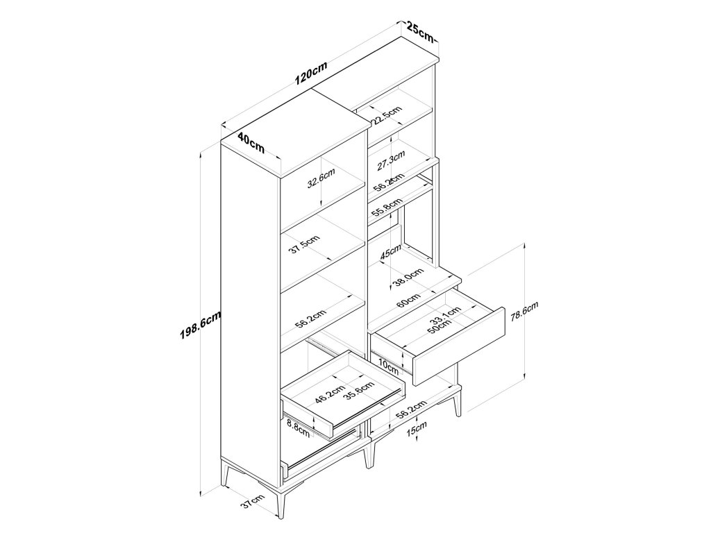 - Rozmer: 198.6 x 120 x 40 cm