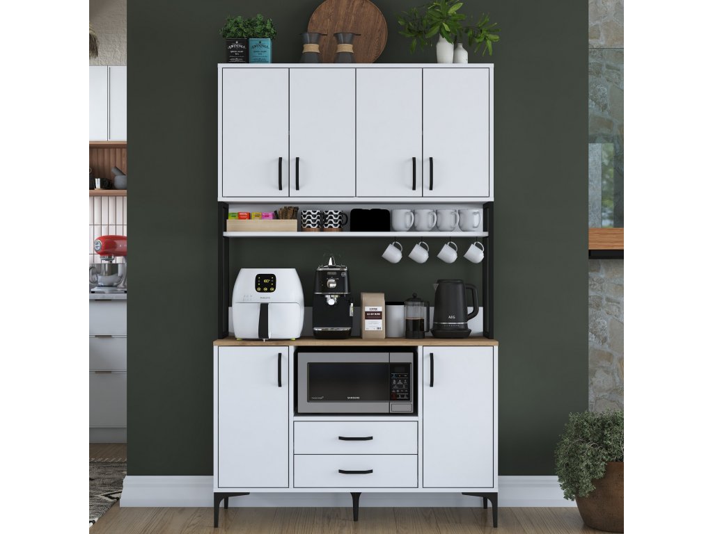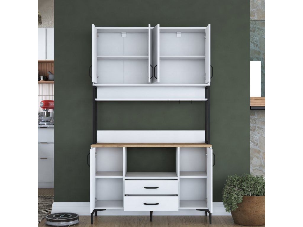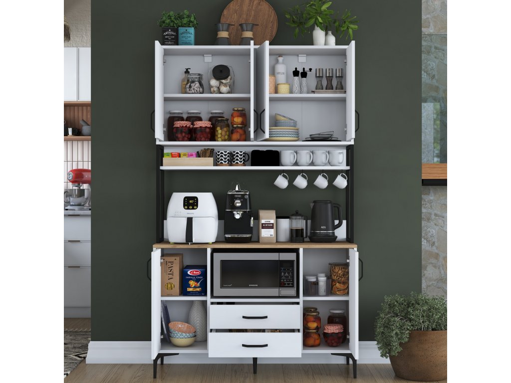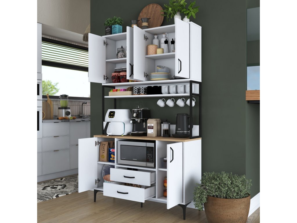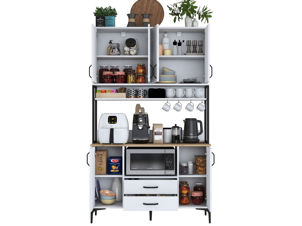 Skriňa WAMIN ponúka dostatok úložného priestoru vďaka šiestim plným dvierkam, dvom zásuvkám a otvorenému regálku. Je navrhnutá tak, aby pojala nielen mikrovlnnú rúru, ale aj ďalšie kuchynské spotrebiče, riad či príslušenstvo.