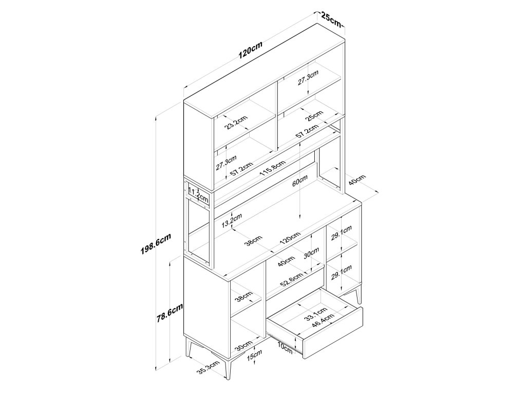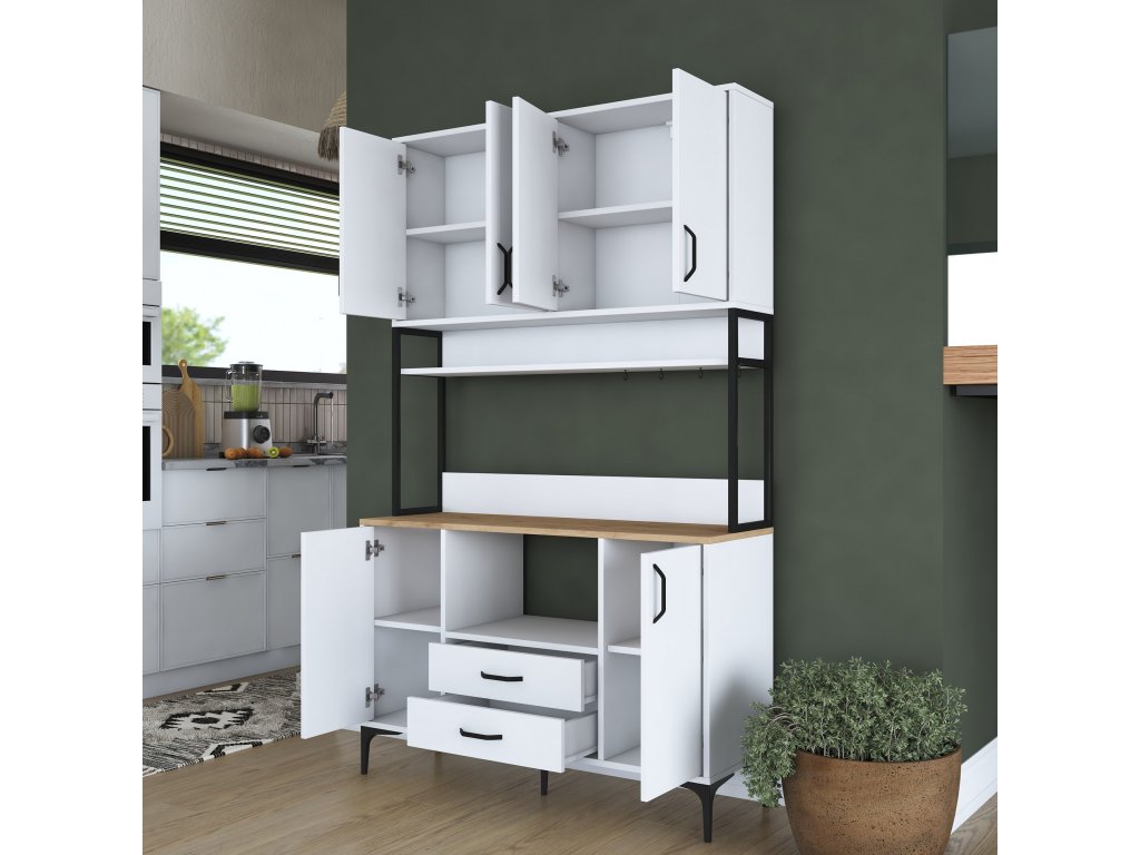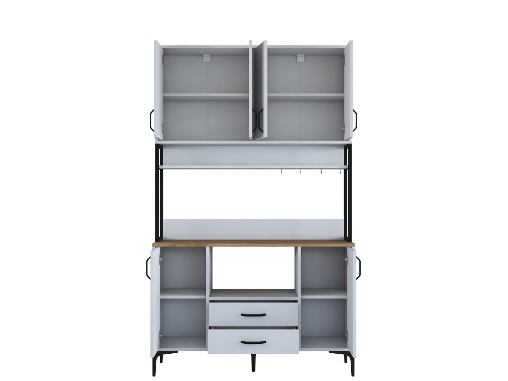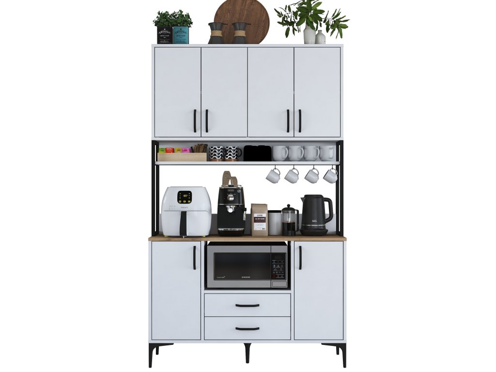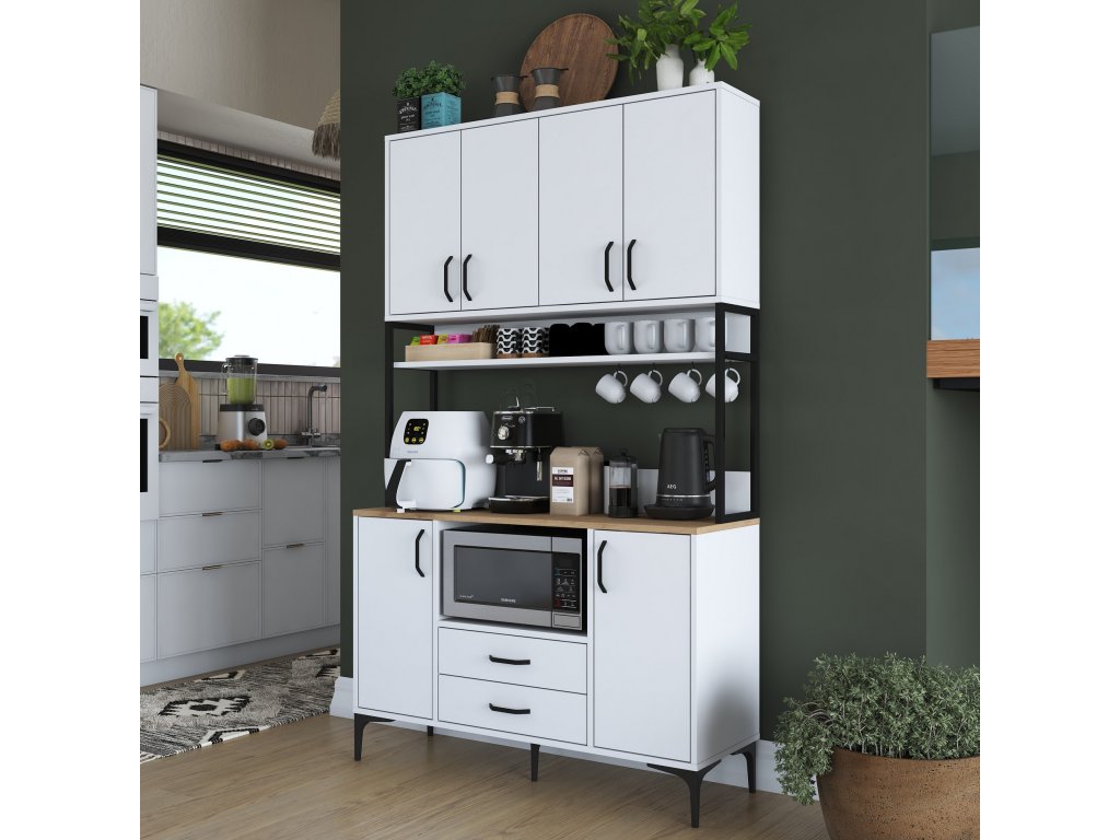 Skriňa WAMIN ponúka dostatok úložného priestoru vďaka šiestim plným dvierkam, dvom zásuvkám a otvorenému regálku. Je navrhnutá tak, aby pojala nielen mikrovlnnú rúru, ale aj ďalšie kuchynské spotrebiče, riad či príslušenstvo.