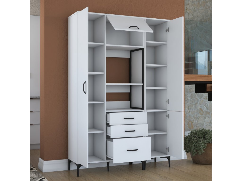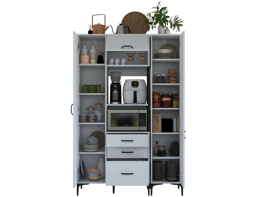 Skriňa YORKER ponúka optimálny úložný priestor vďaka štyrom plným dvierkam, trom zásuvkám a praktickému regálku. Je ideálny na usporiadanie kuchynských potrieb, riadu a ďalších predmetov, ktoré chcete mať ľahko prístupné a pritom upratané.