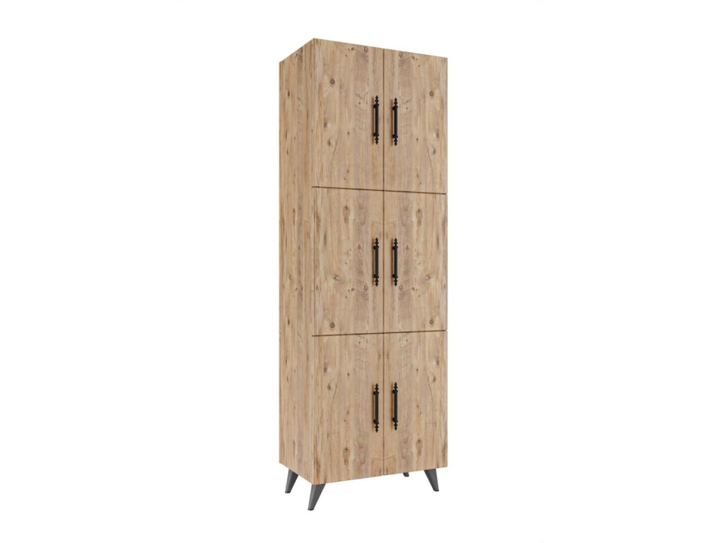 Skriňa NORDON disponuje 2 dverami a 5 poličkami, ktoré poskytujú dostatok priestoru na uskladnenie vašich vecí. Stojí na elegantných nožičkách, čo uľahčuje údržbu podlahy pod ňou. Vyrobená z kvalitnej drevotriesky potiahnutej melamínom, skriňa NORDON zaručuje dlhú životnosť a odolnosť.