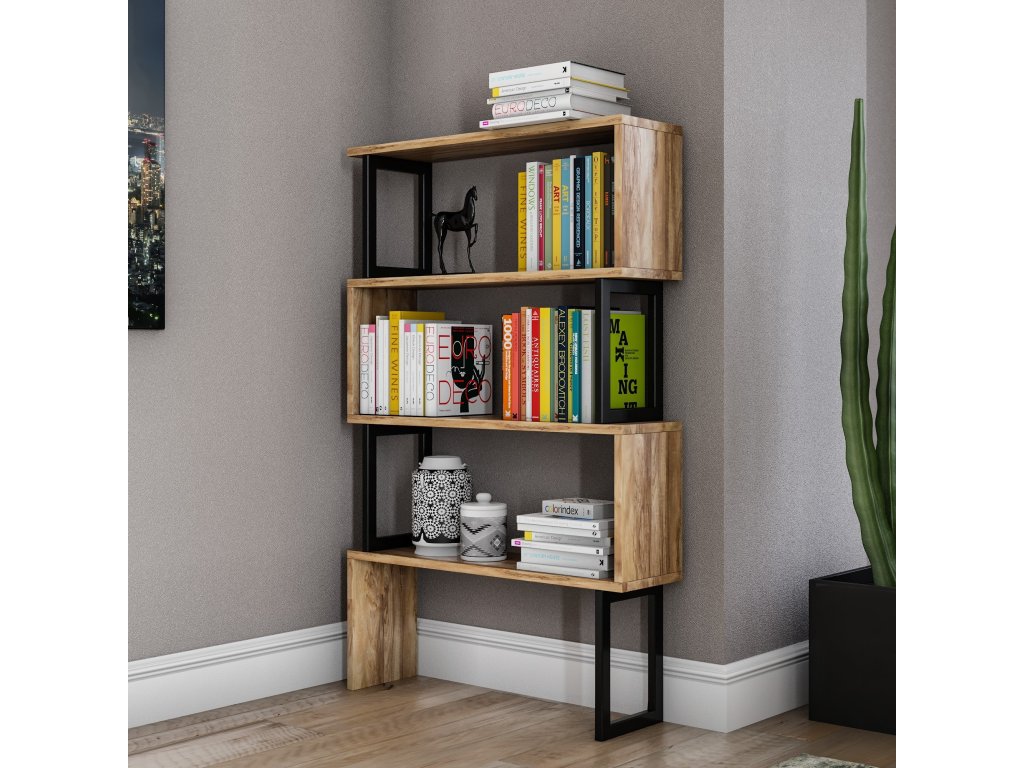 Knižnica DELI je navrhnutá tak, aby poskytovala praktický a prehľadný úložný priestor. S tromi policami ponúka dostatok miesta na uloženie kníh, dekorácií alebo iných predmetov, ktoré chcete mať na očiach. Jej kovová konštrukcia v kombinácii s orechovým dekorom prináša do interiéru moderný a nadčasový štýl.