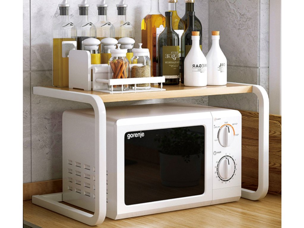 Praktická funkčná polica nad mikrovlnku WAVE v podobe mini regálu poslúži ako praktický doplnok pre využitie priestoru nad mikrovlnkou. Konštrukcia je vyrobená z pevného kovu v bielej farbe, polica je z MDF materiálu vo farbe dub Sonoma.
