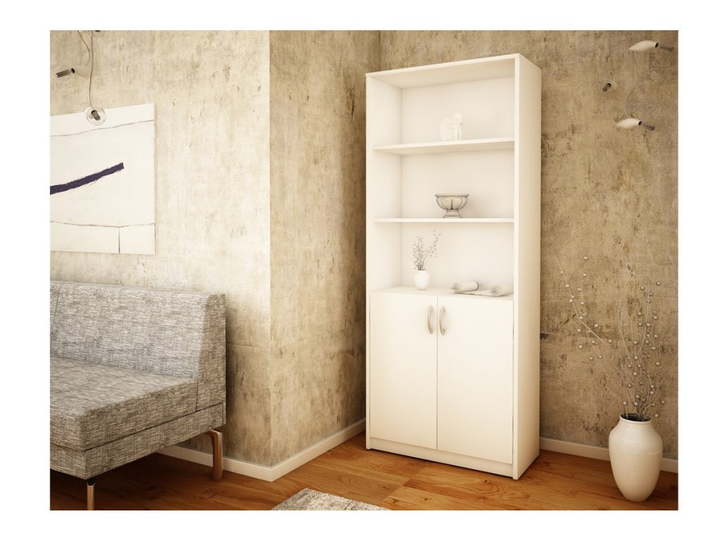 Policový regál s dvierkami MAXIM 5, biela