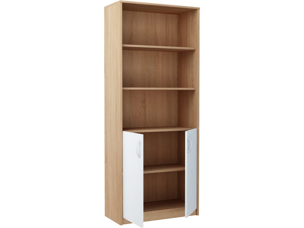 Policový regál s dvierkami MAXIM 5, dub sonoma/biela