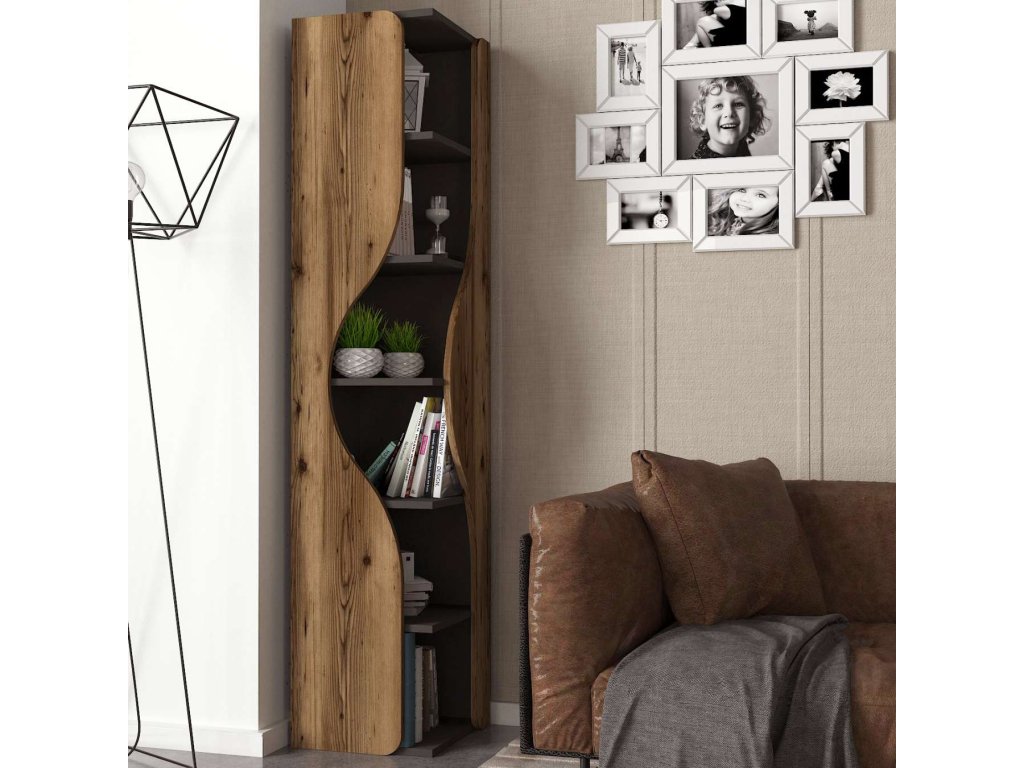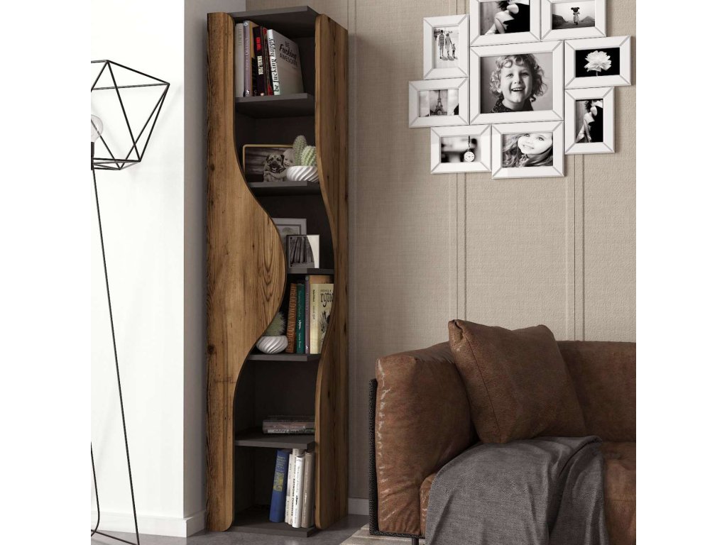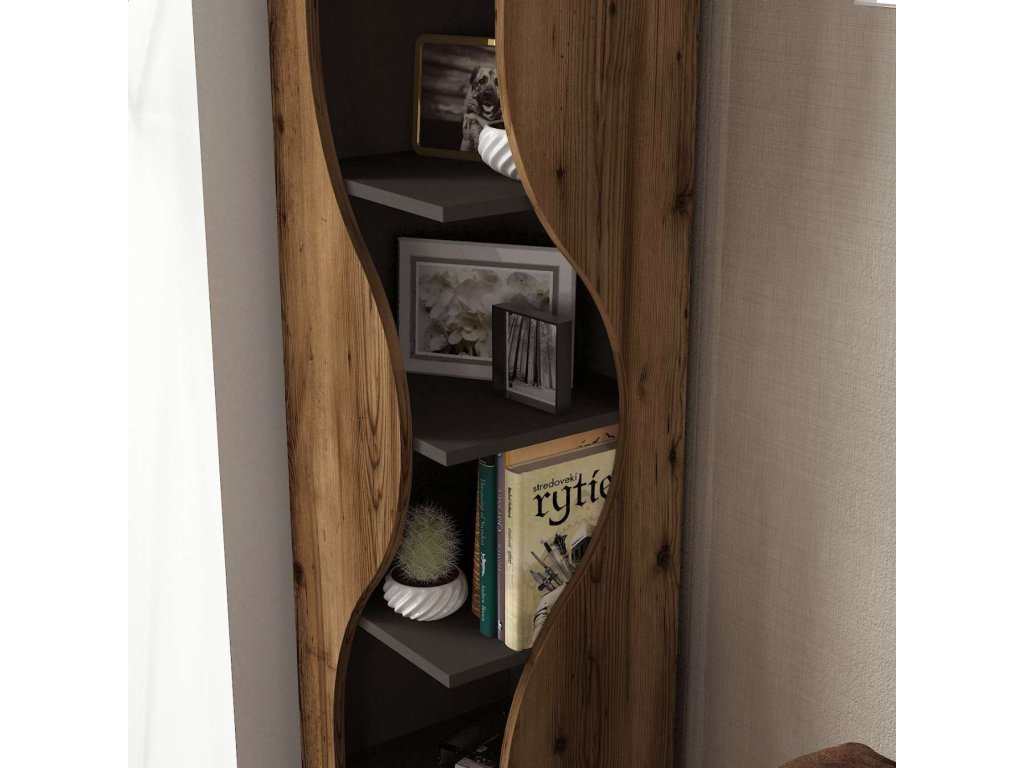 Regál TOTO vyniká svojim moderným a praktickým dizajnom, ktorý sa skvele hodí do akéhokoľvek interiéru. Päť pevných políc poskytuje dostatok úložného priestoru na knihy, dekorácie či kancelárske potreby. Kombinácia antracitovej a orechovej farby dodáva regálu elegantný vzhľad. Robustný LTD materiál s hrúbkou 18 mm zaisťuje dlhú životnosť a stabilitu tohto regálu. Skvelou vlastnosťou je možnosť rozdeliť regál na 2 rohové ragály.
