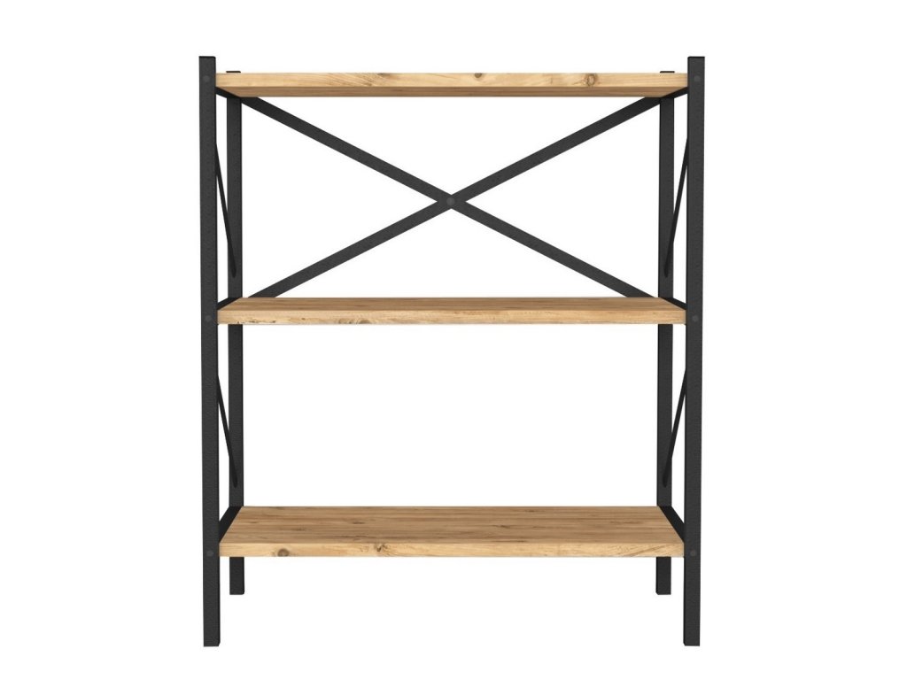 Dosky regálu sú vyrobené z 18 mm drevotrieskovej dosky. Konštrukcia je vyrobená z kovu v čiernom prevedení.