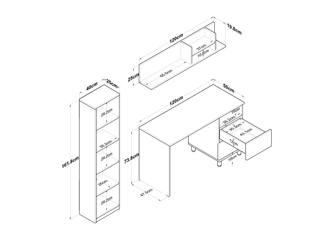 - Rozmery: 161,8 x 120 x 50 cm – priestranný dizajn pre pohodlnú prácu jednej osoby.