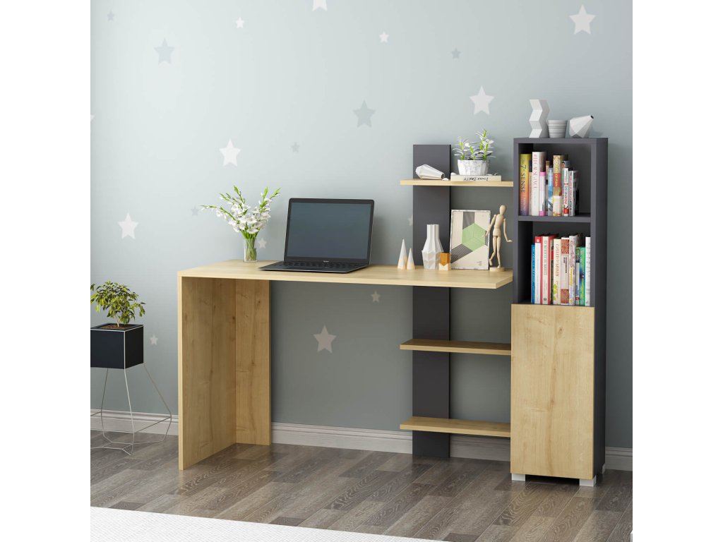 Pracovný stôl s regálom CARIBIC, dub/antracit
