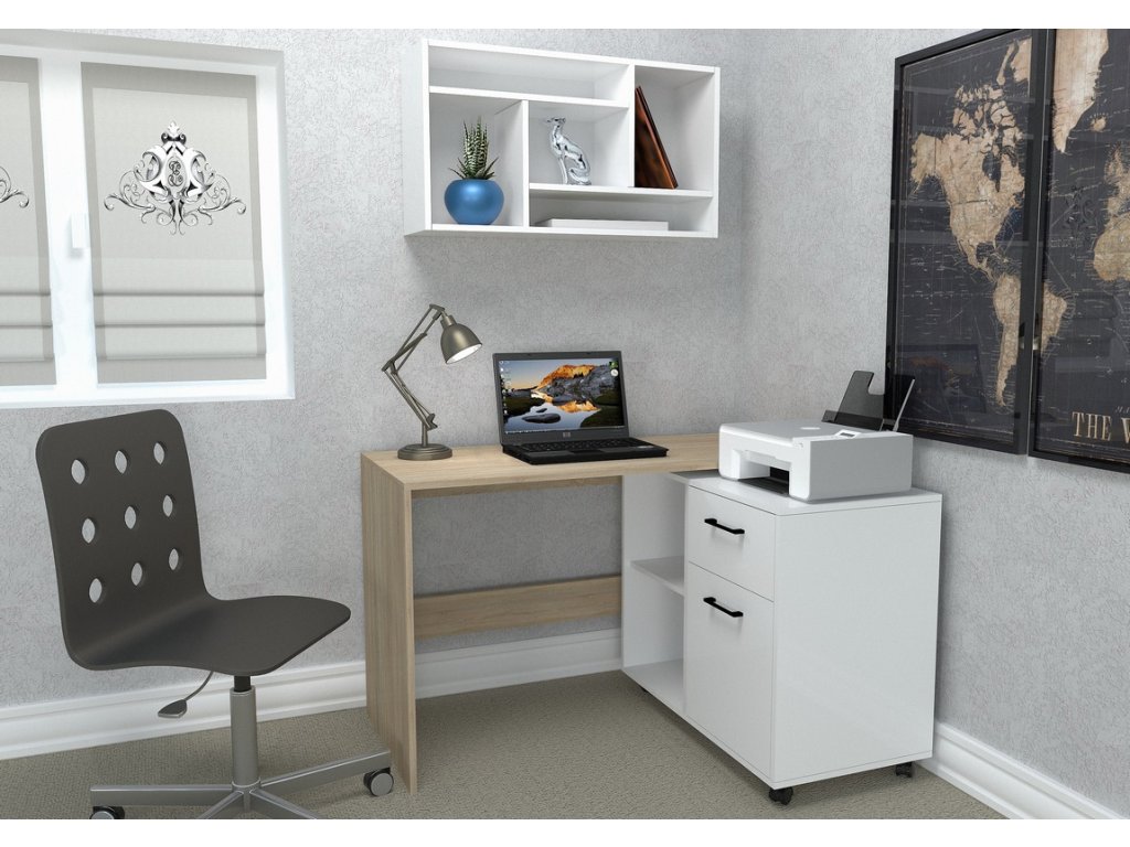 Pracovný stôl SALLY, dub/biela, pravé prevedenie