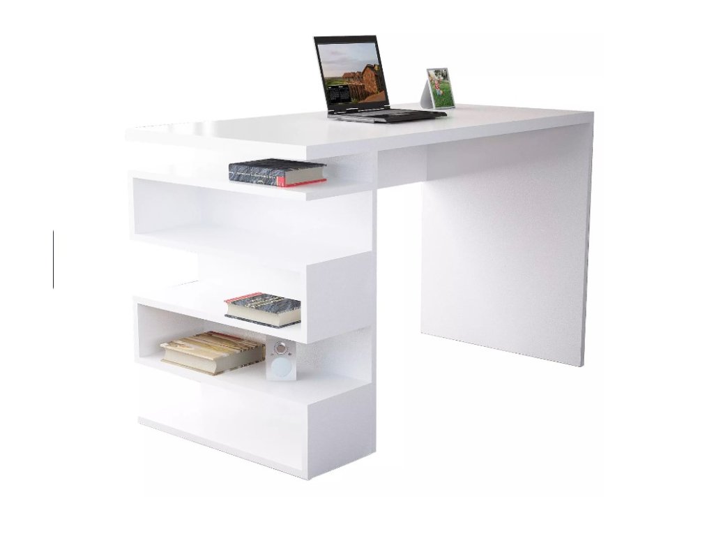 Štýlový a moderný pracovný stôl SNACK Vás zaujme svojim netradičným usporiadaním políc na boku stolíka. Dostatočne priestranný pracovný priestor stola poskytuje dostatok miesta na prácu a ďalšie činnosti. Praktické bočné police využijete pre knihy a dokumenty, ktoré nechcete mať práve na stole. Stôl je vyrobený z kvalitného materiálu, ktorý je nenáročný na údržbu a ideálny pre každodenné používanie.
