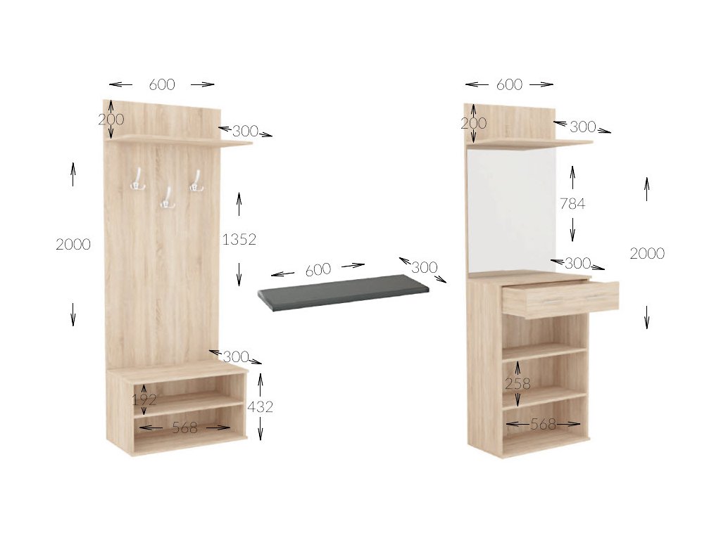 | Zostava obsahuje: | panel s vešiakom š/v/h 60 |