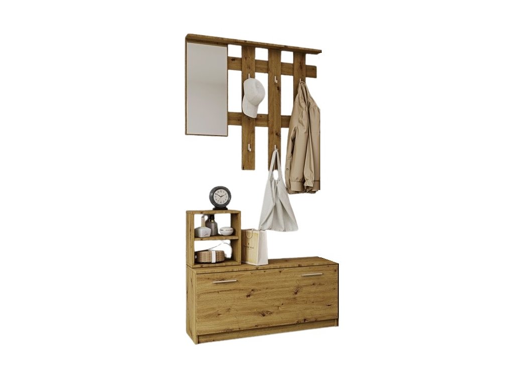 | Zostava obsahuje: | vešiaková stena so zrkadlom- v/š/h 90 x 100 x 10, skrinka na topánky - rozmery v/š/h 46 x 100 x 32, regál - rozmery v/š/h 36 x 33 x 20 cm |