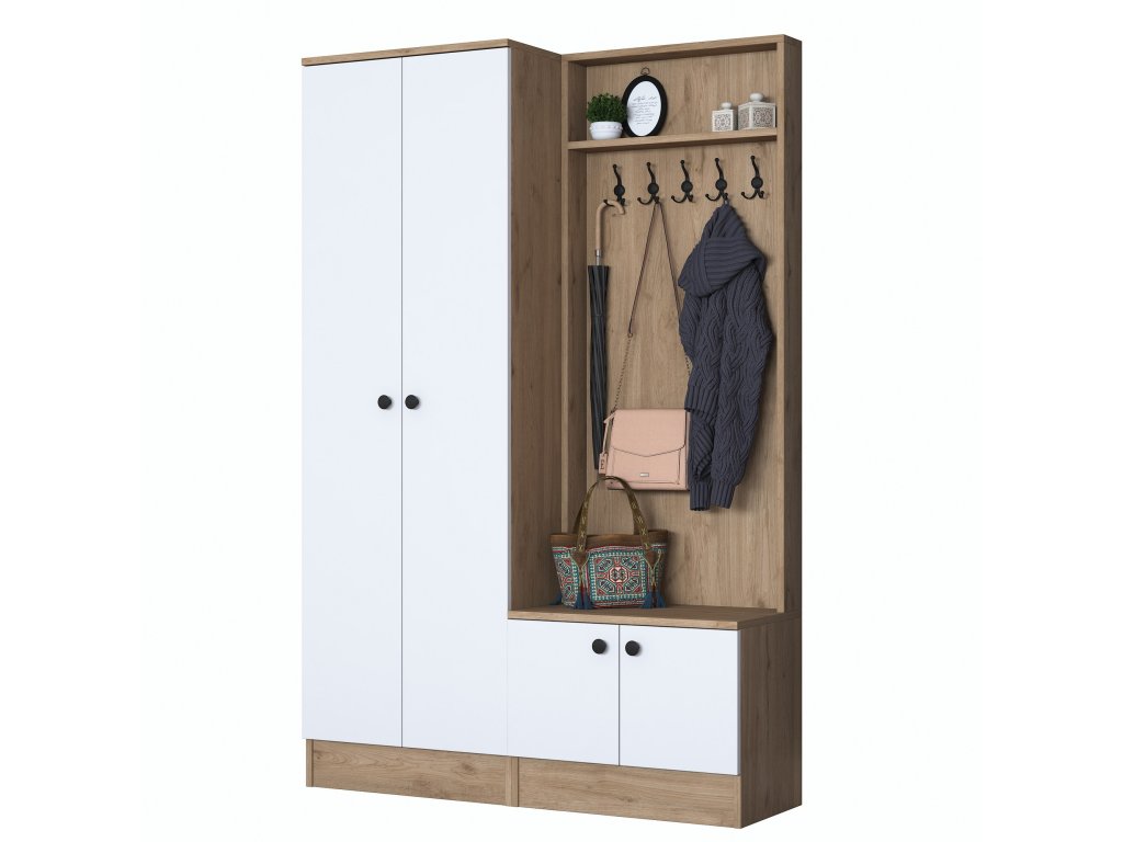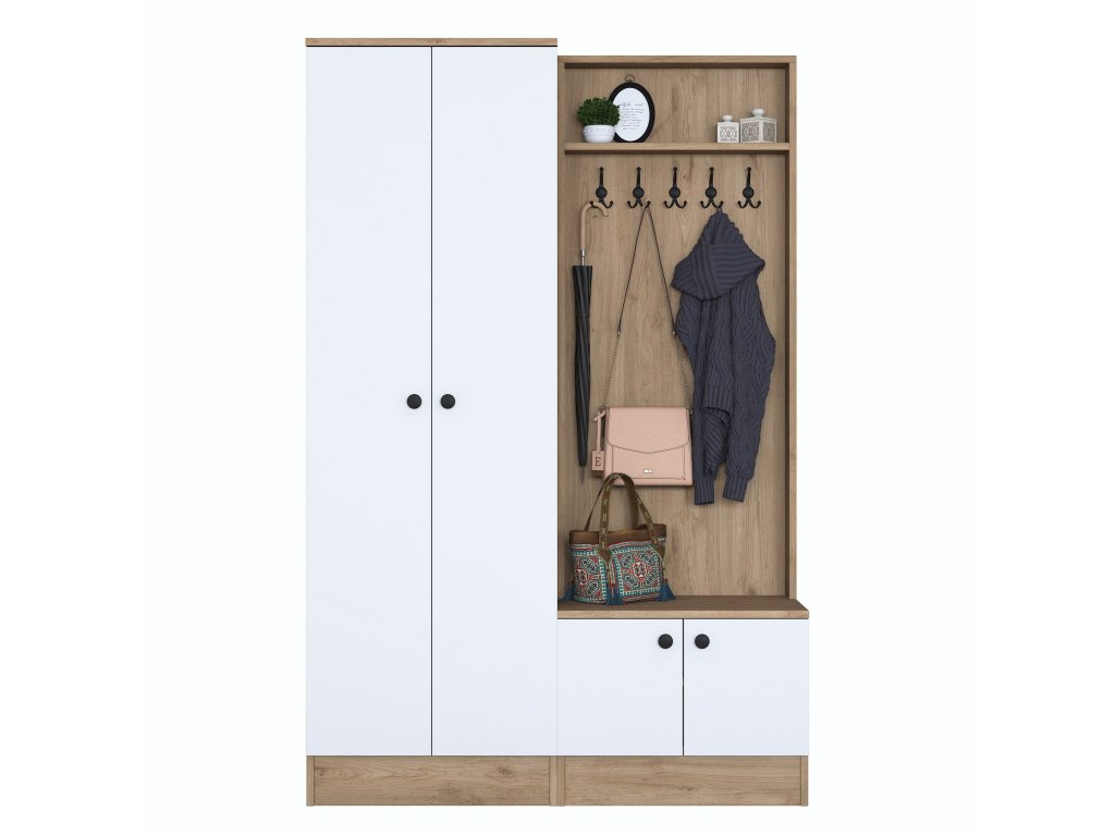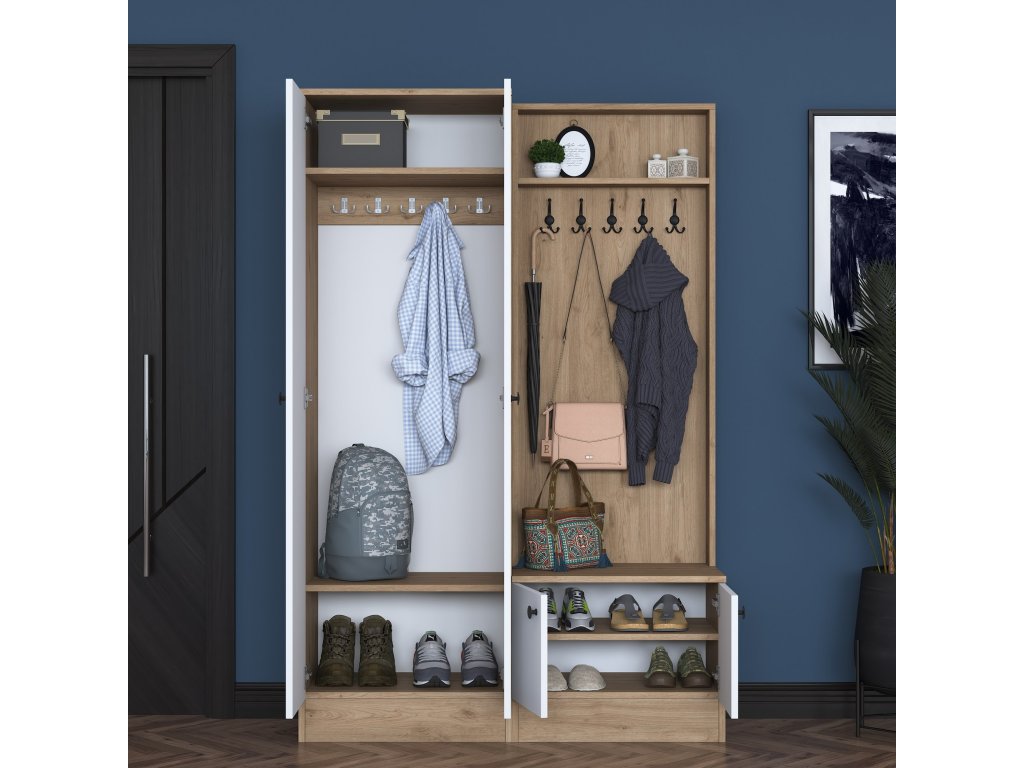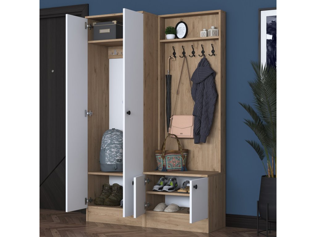 | Zostava obsahuje: | šatníková skriňa, skriňa na topánky, vešiak |