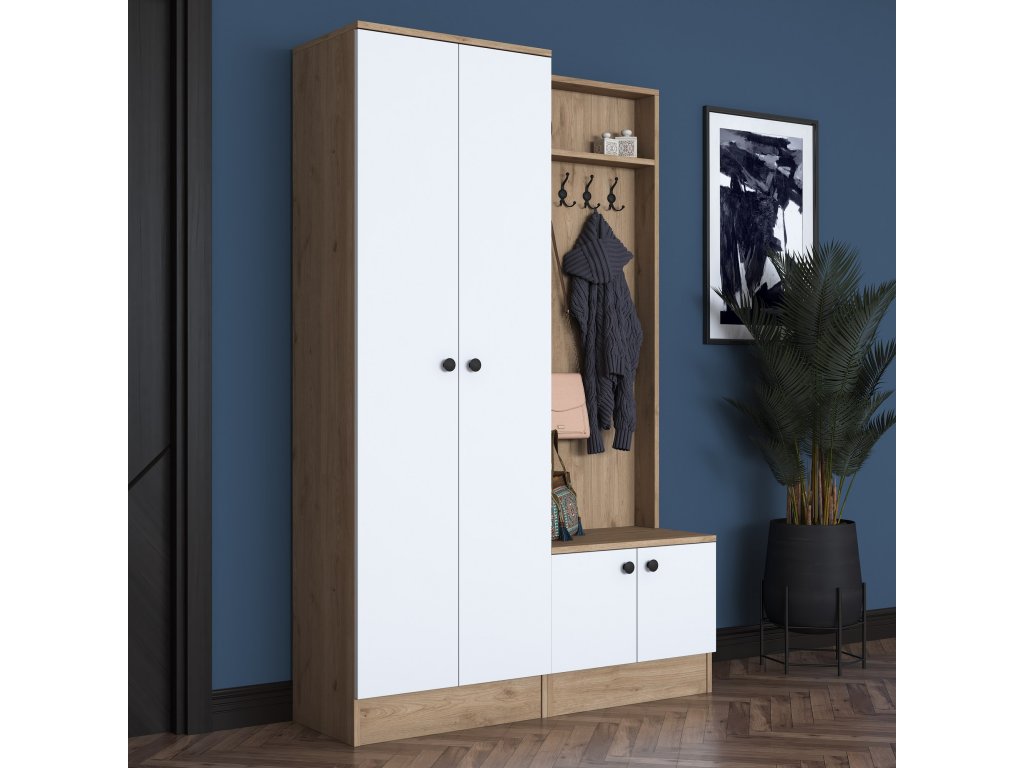 Predsieňová stena CABEL, biela/orech