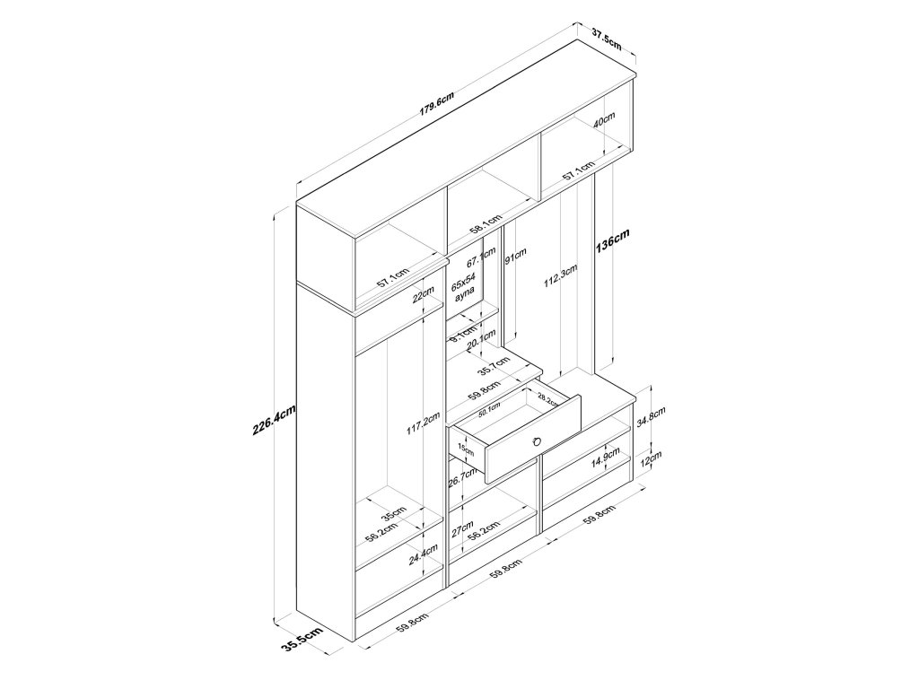 - Rozmery: 226,4 x 179,4 x 37,5 cm – dostatočne priestranná aj pre väčšie predsiene.