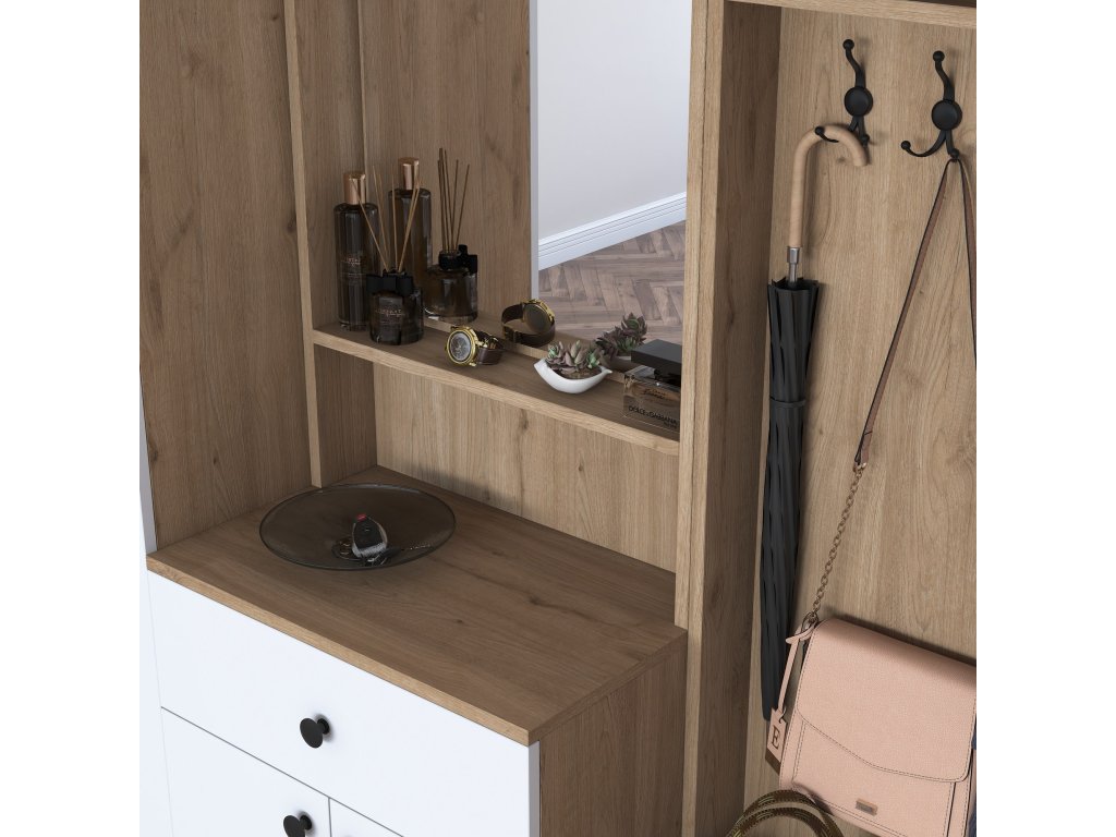Predsieňová stena CAPE, biela/orech
