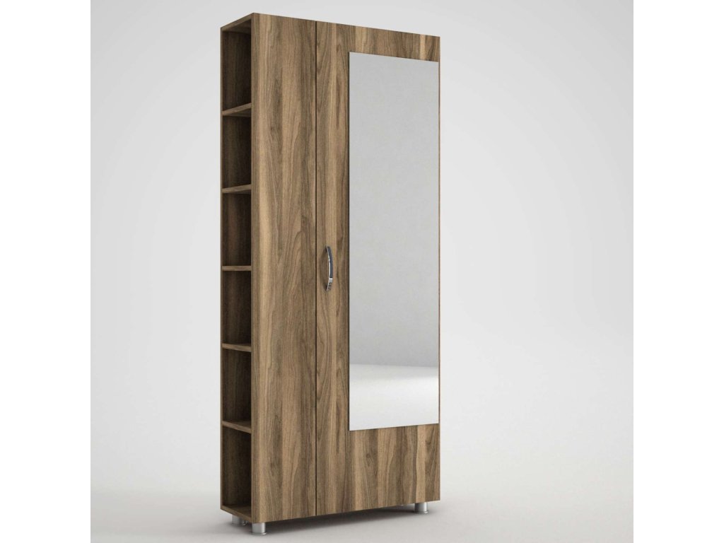 Predsiňová zostava MERYA ponúka kombináciu skrine, šatníka, vešiakov a veľkého zrkadla, čo zaisťuje dostatok úložného priestoru pre všetky vaše potreby. Vyrobená z kvalitných materiálov LTD a skla s hrúbkou 18 mm, zaručuje dlhú životnosť a odolnosť. Farba orecha dodáva zostave moderný a prírodný vzhľad, ktorý ľahko zapadne do každého interiéru.