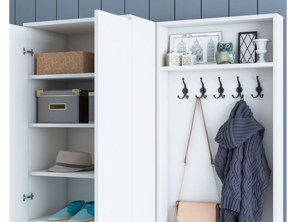 - Vešiak: ideálny na zavesenie tašiek, klobúkov alebo často používaných odevov.