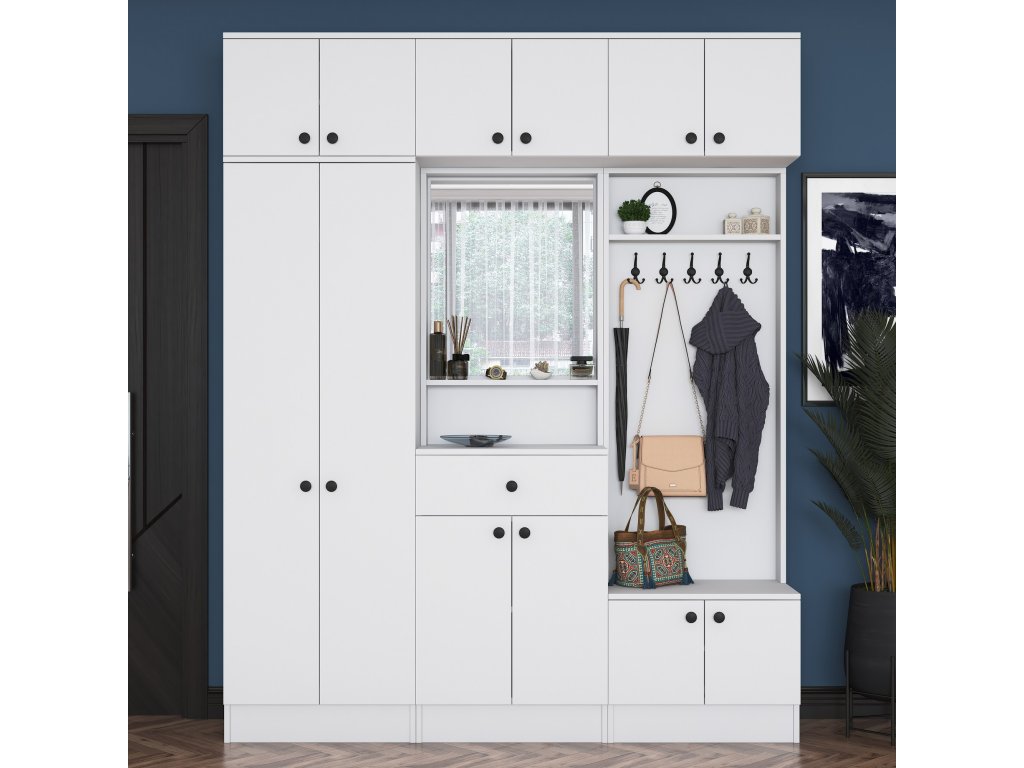 Predsiňová zostava SHARD je dokonalou kombináciou elegancie a funkčnosti. Je navrhnutá v čisto bielom prevedení v škandinávskom štýle, ktorý dodáva priestoru sviežosť a moderný vzhľad. Vysoké prevedenie a inteligentné usporiadanie ponúka dostatok úložného priestoru pre vašu predsieň.