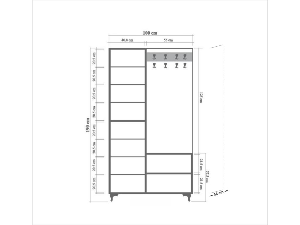 Predsiňová zostava ATMO ponúka kombináciu praktických prvkov a estetického dizajnu. Skriňa so zrkadlom nielenže poskytuje úložný priestor na vaše oblečenie a doplnky, ale zrkadlo zároveň opticky zväčší priestor a uľahčí kontrolu vášho vzhľadu pred odchodom. Vešiak umožňuje ľahké zavesenie kabátov, tašiek alebo klobúkov.